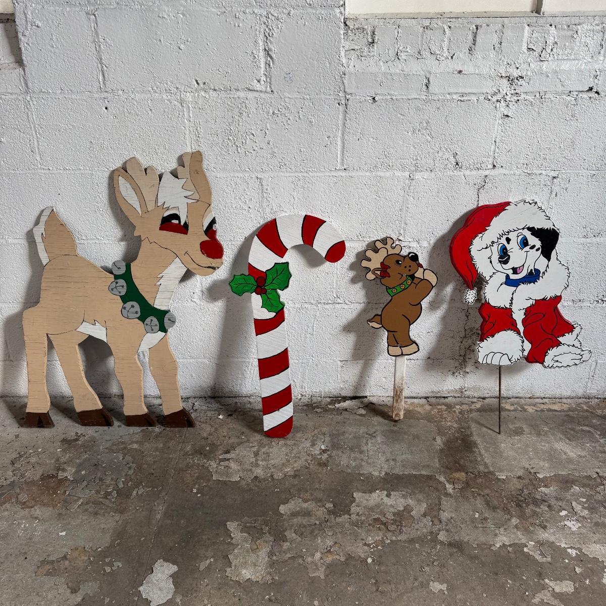 557 Lot of Three Reindeer, Candycane, Dalmatian Hand made Wooden Signs