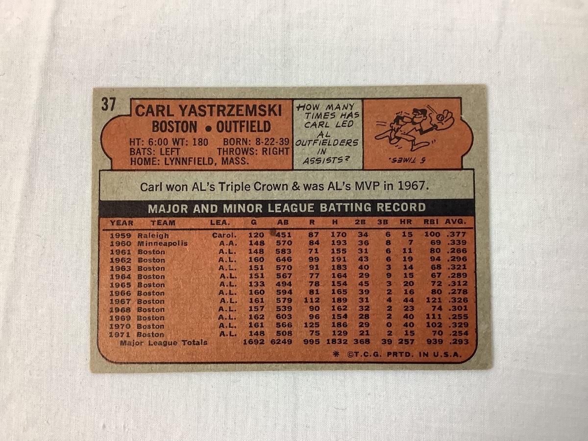 1972 Topps Chewing Gum Carl Yastrzemski, Boston Red Sox #37 Baseball Card.