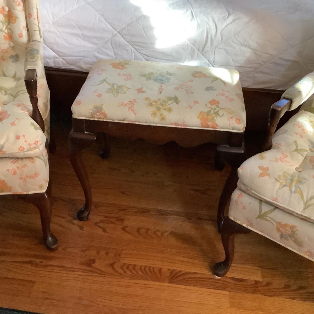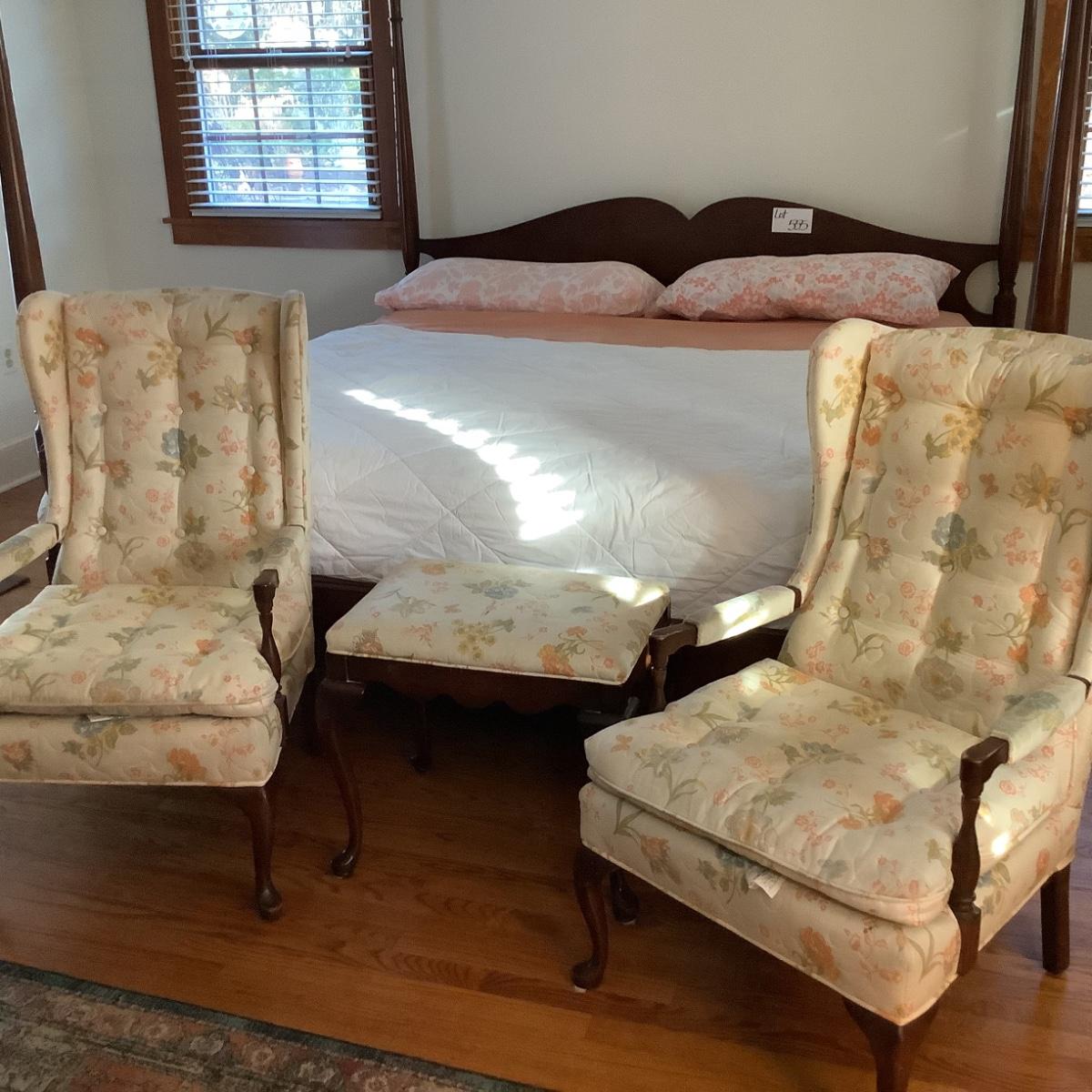 558 Pair of Vintage Upholstered HARDEN Arm Chairs with Ottoman