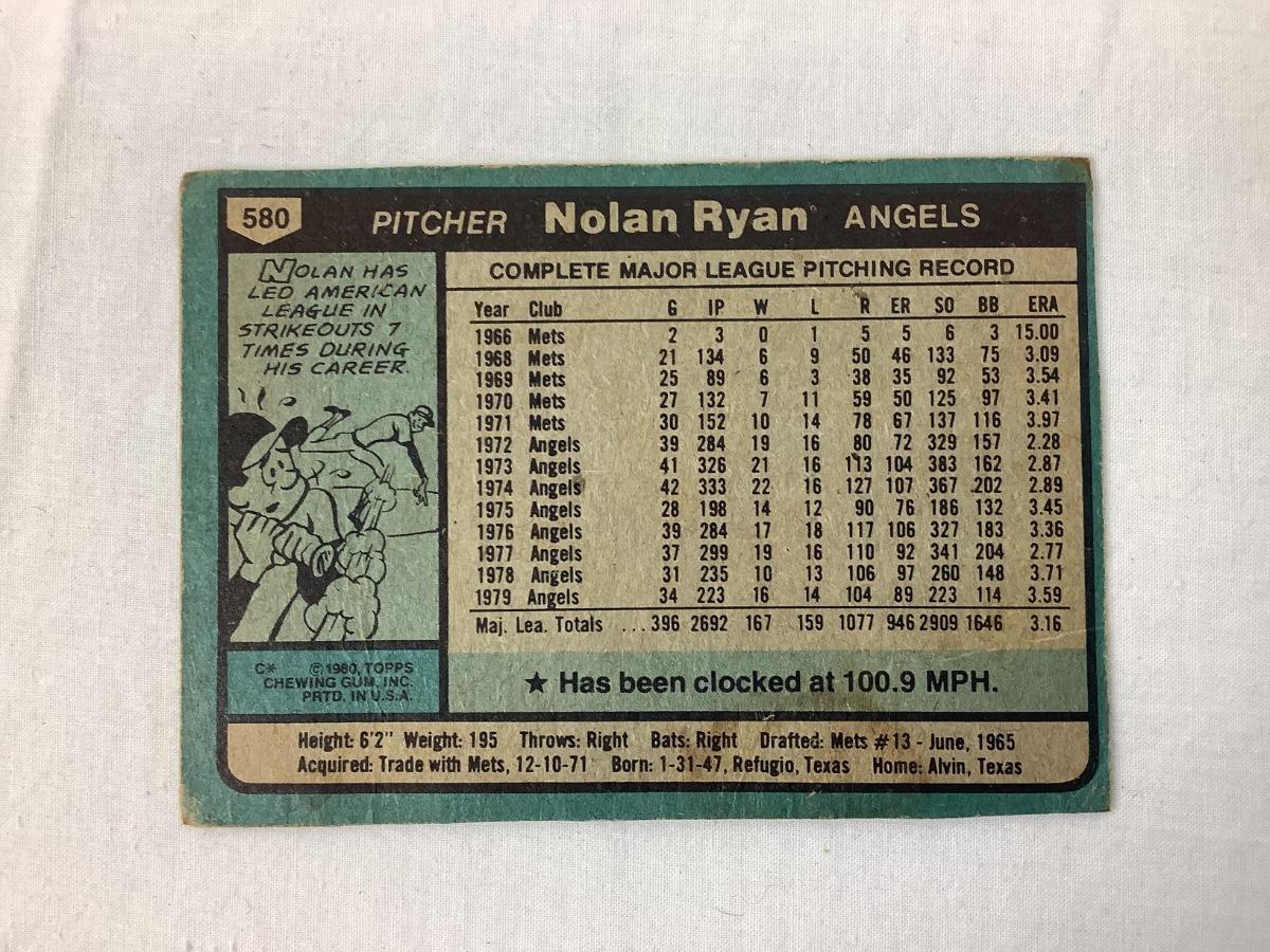1980 Topps Chewing Gum All-Star Nolan Ryan, California Angels #580 Baseball Card.