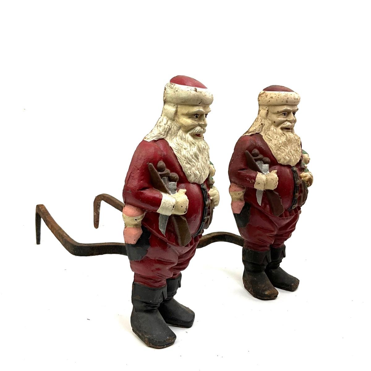 559 Pair of Santa Cast Iron Andirons
