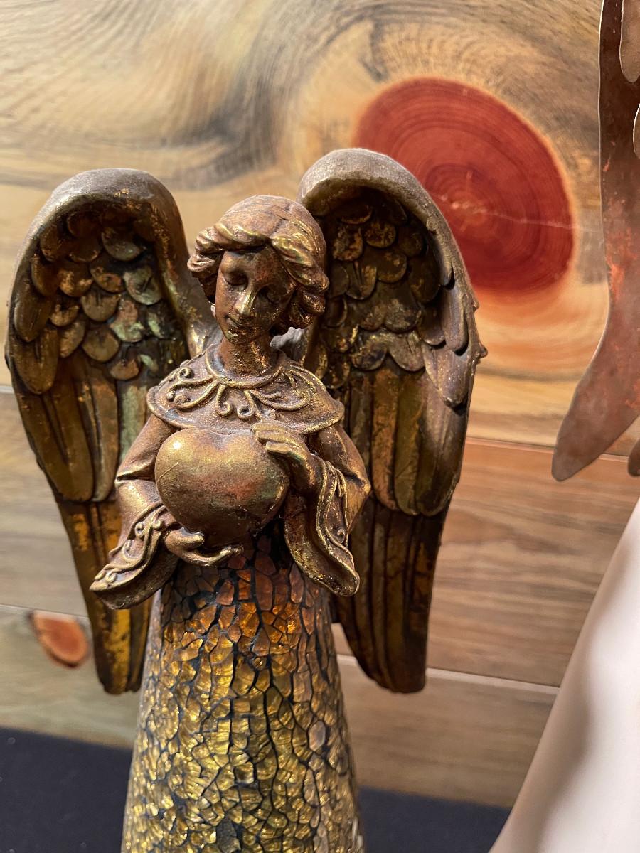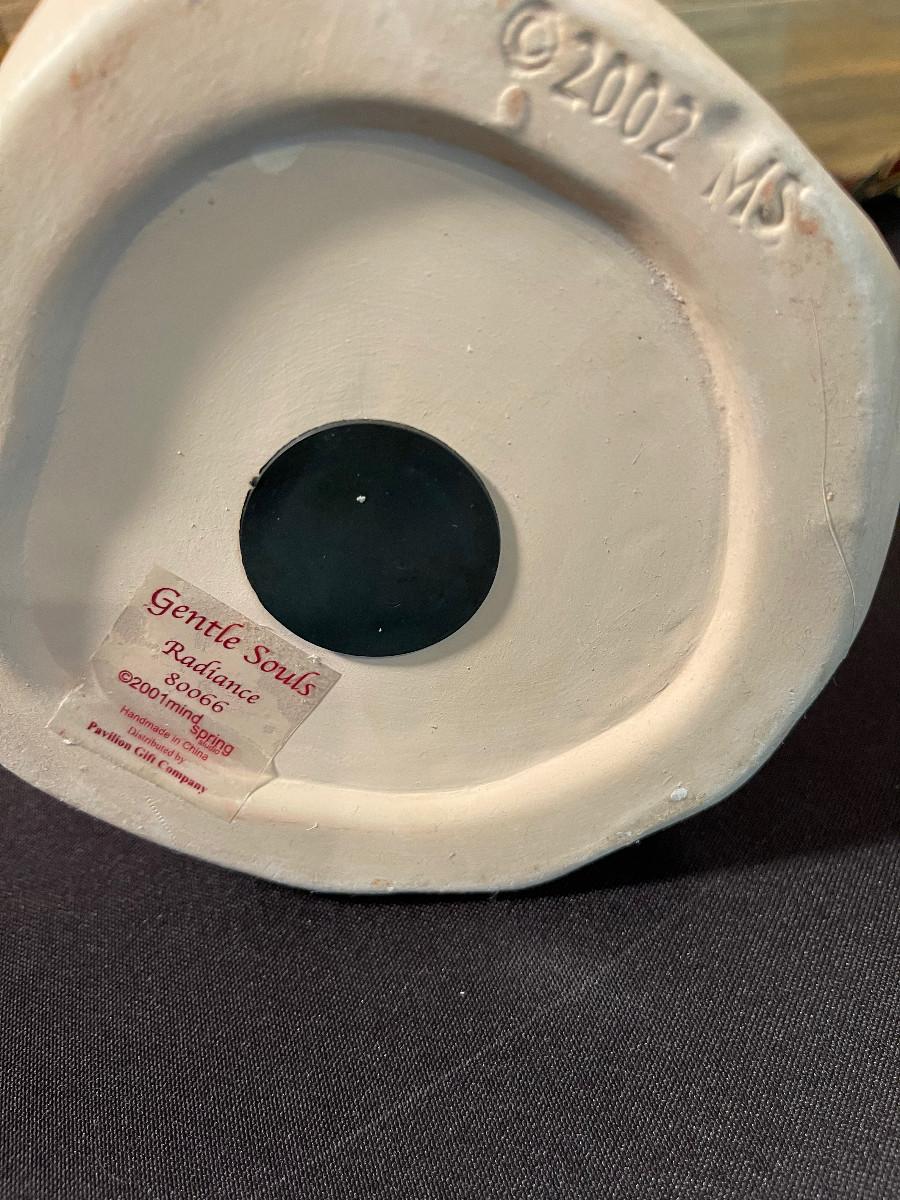 Tall one looks like it has been repaired. Ceramic material. Taller is 19"