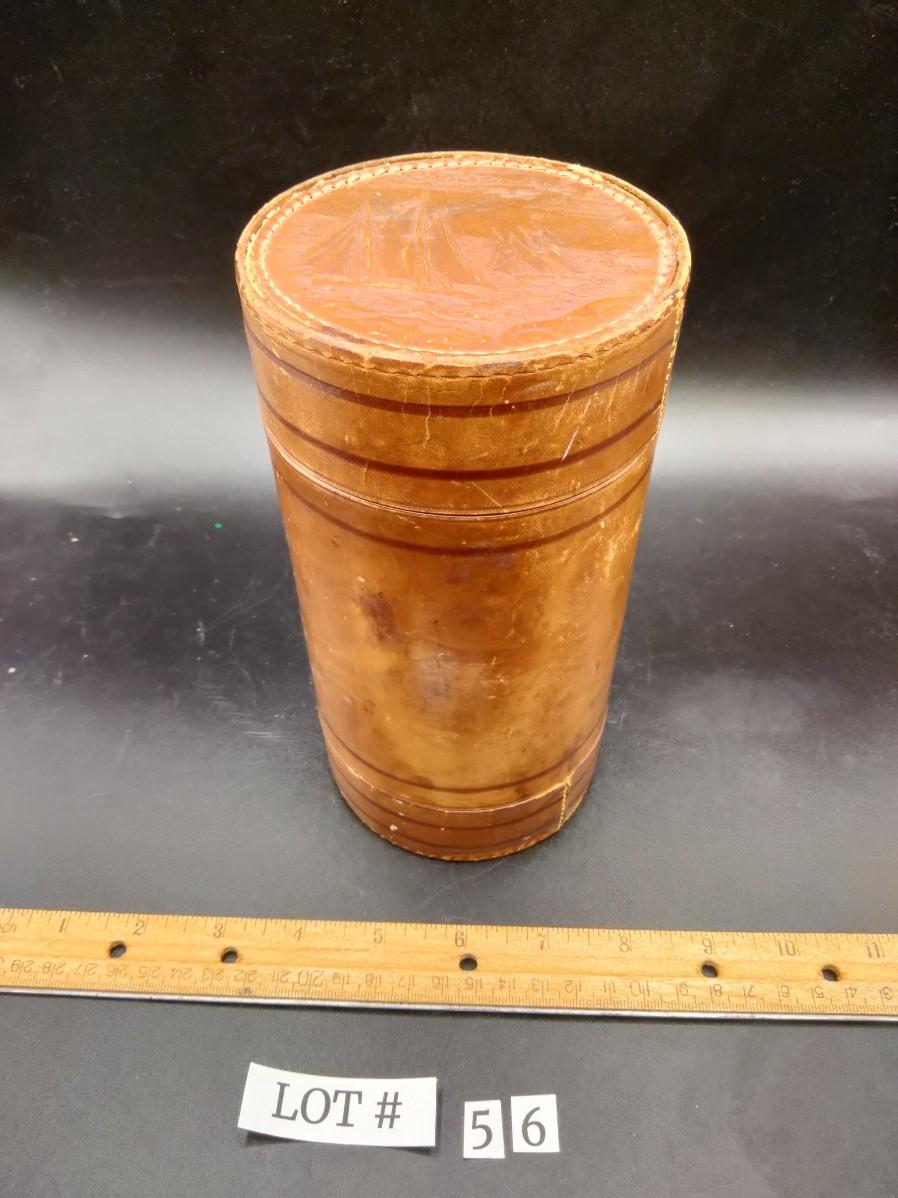 56 - Antique Leather cuff and collar travel box