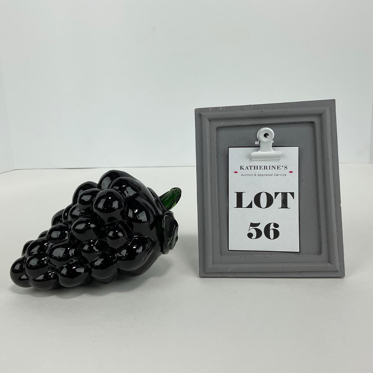 One vintage art glass purple grapes figure. This piece has no damage, and appears to be in great shape with no visable chips, cracks, or broken pieces. Please see photos for details and condition. Any condition statement is given as a courtesy to a client, is an opinion, and should not be treated as a statement of fact. Reference to condition written, oral or within a condition report shall not be regarded as a full account of condition and may not include all defects, alterations, or restorations. Absence of a condition report does not imply a lot is flawless or lacking imperfections or damage. Katherine’s Auction & Appraisal Service shall have no responsibility for any error or omission. Returns shall not be accepted on the basis of condition. ::: Shipping is available on this lot. If you require shipping you must let us know at the close of the auction. We will coordinate with you after the item has been won. Shipping fees will include insurance up to or exceeding the value of all items being mailed. If you have any questions regarding this lot please contact the auctioneer either via this website, by direct email or by phone. PICK UP TIMES and other important information can be found in the TERMS and DESCRIPTION of the auction. Please take a look for pertinent information. Thanks!