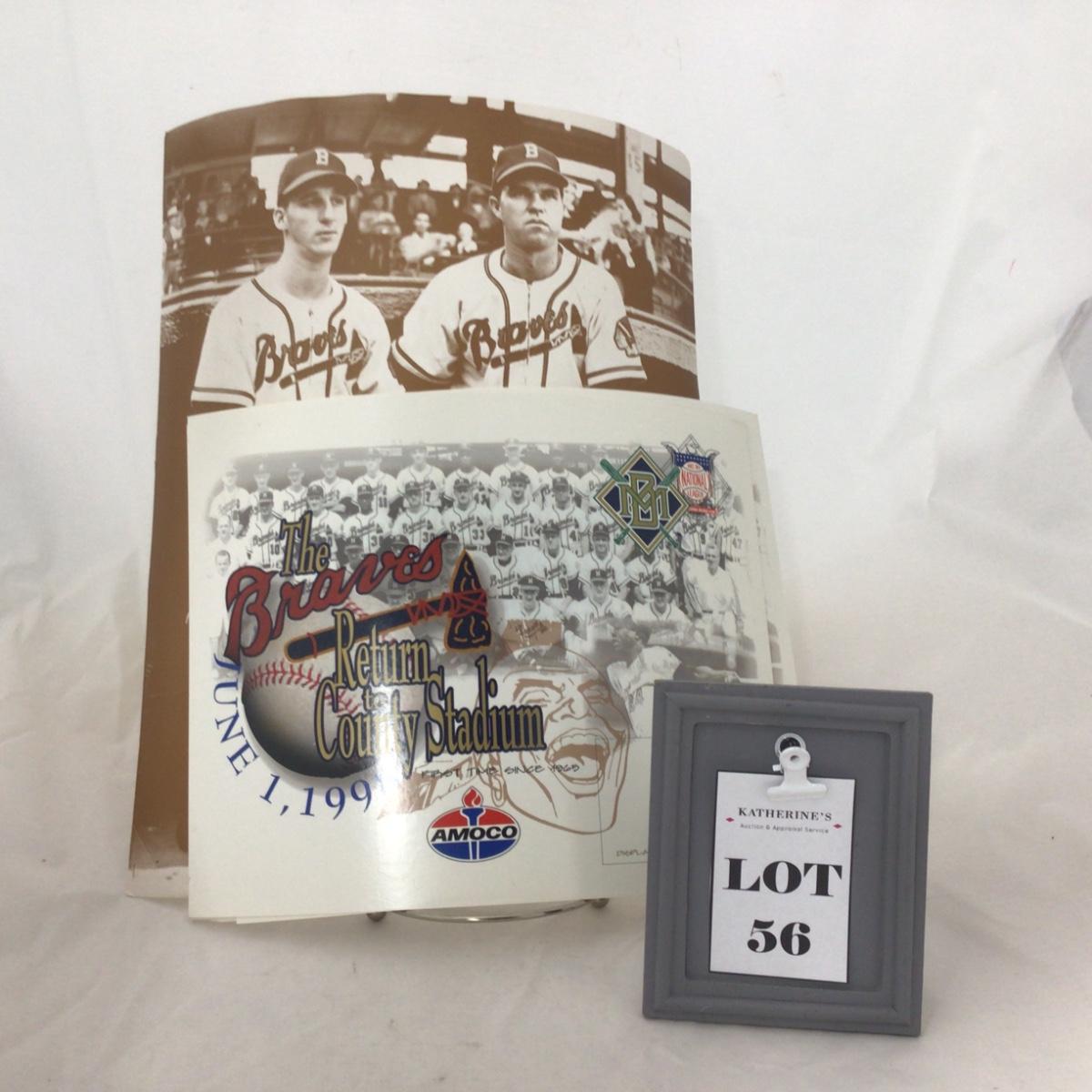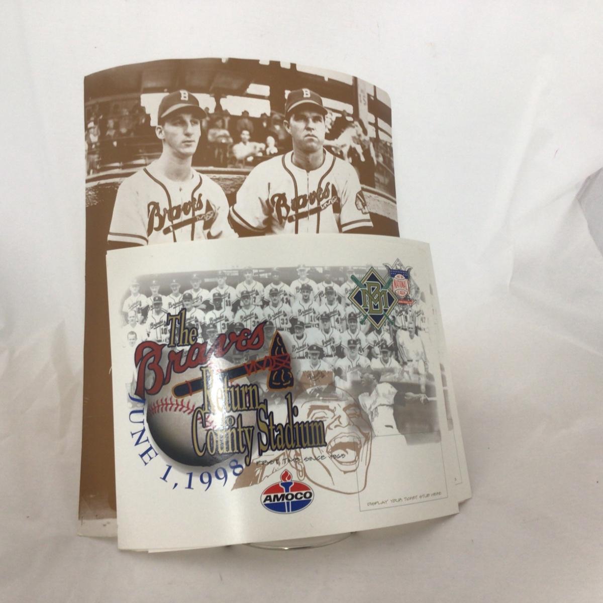 Six Pieces total Braves poster and braves collectibles. Please see photos for details and condition. ::: Shipping is available on this lot. If you require shipping you must let us know at the close of the auction. We will coordinate with you after the item has been won. Shipping fees will include insurance up to or exceeding the value of all items being mailed. If you have any questions regarding this lot please contact the auctioneer either via this website, by direct email or by phone. PICK UP TIMES and other important information can be found in the TERMS and DESCRIPTION of the auction. Please take a look for pertinent information. Thanks!