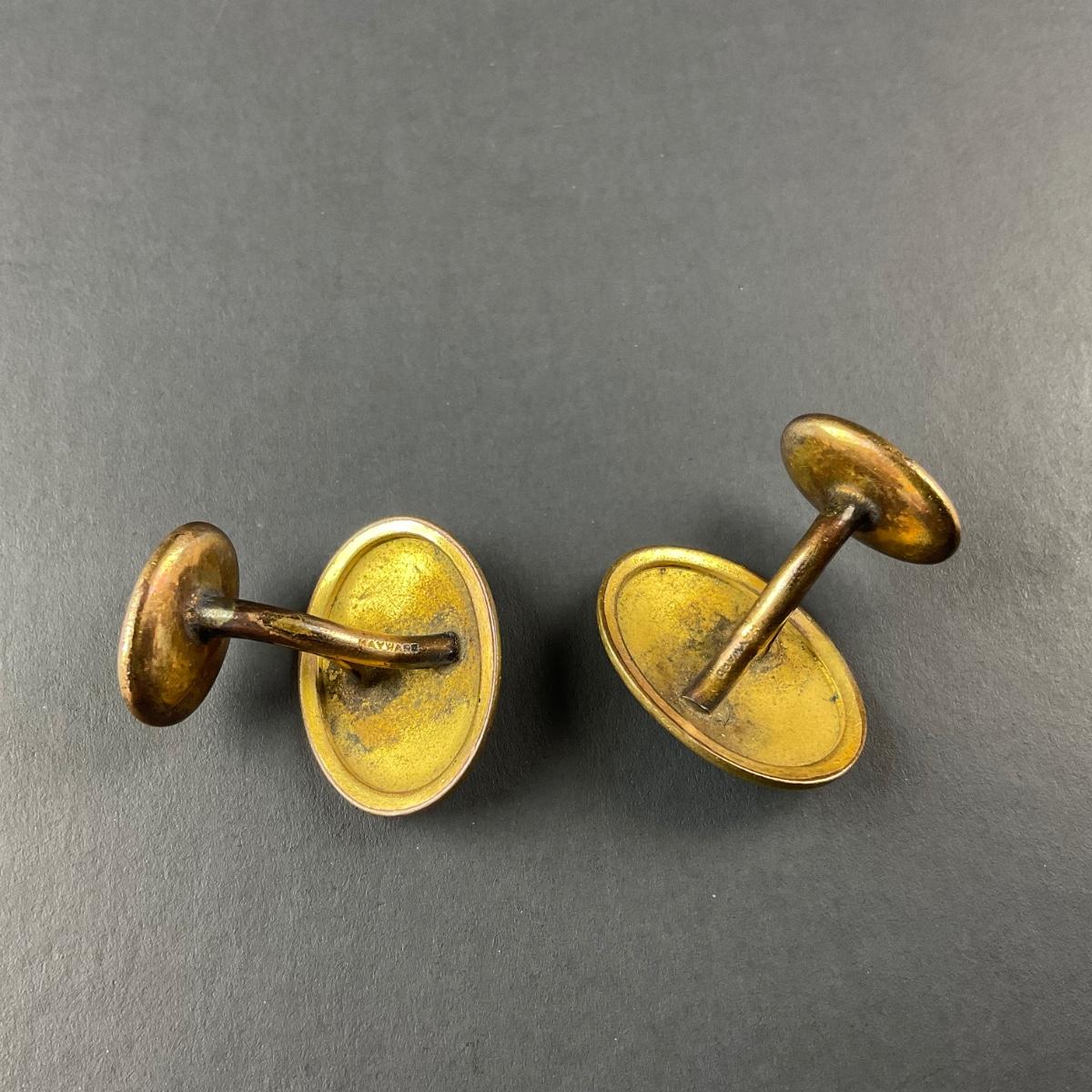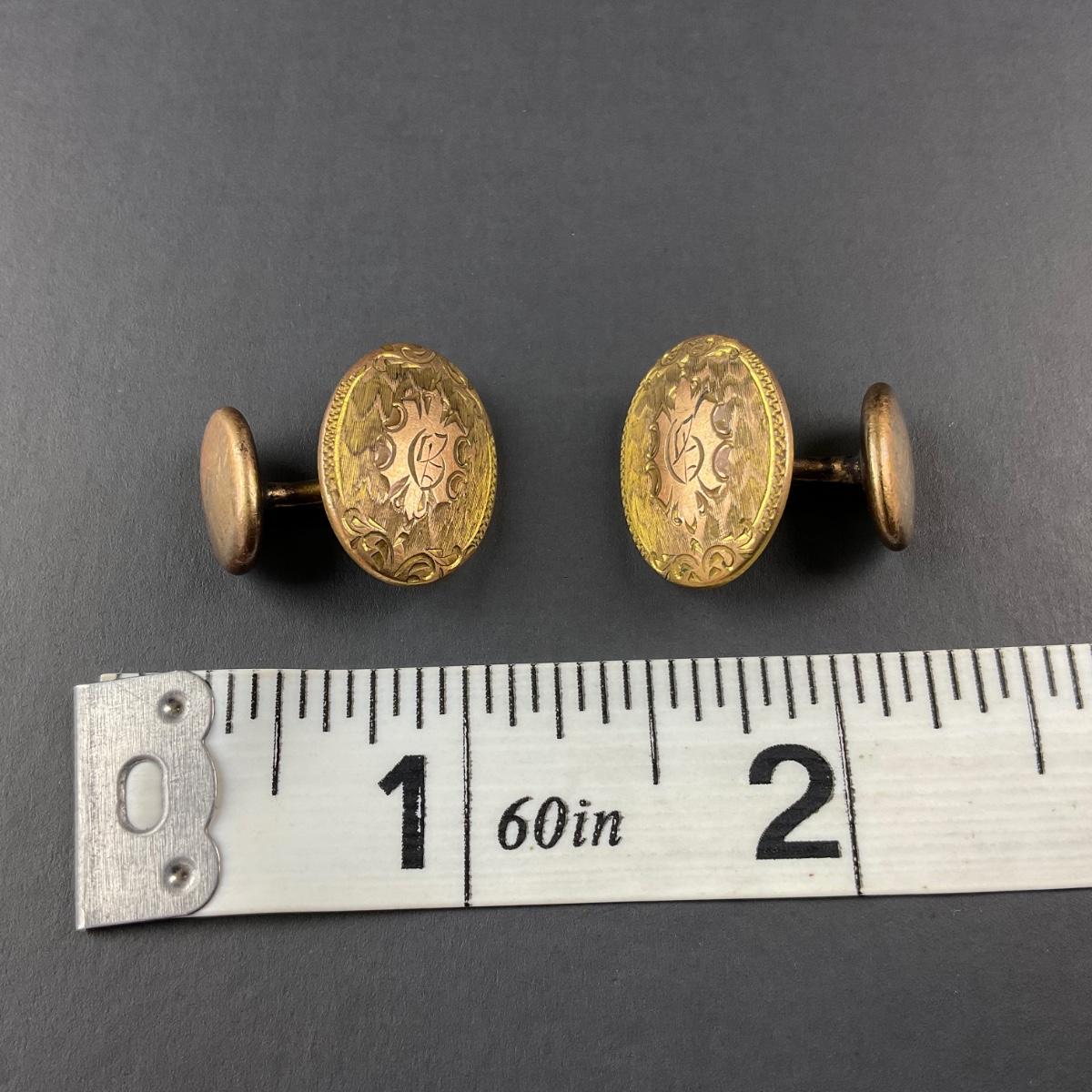 One pair of vintage marked by maker Hayward engraved cuff links. This piece has no damage, and appears to be in great shape with no visable chips, cracks, or broken pieces. Please see photos for details and condition. Any condition statement is given as a courtesy to a client, is an opinion, and should not be treated as a statement of fact. Reference to condition written, oral or within a condition report shall not be regarded as a full account of condition and may not include all defects, alterations, or restorations. Absence of a condition report does not imply a lot is flawless or lacking imperfections or damage. Katherine’s Auction & Appraisal Service shall have no responsibility for any error or omission. Returns shall not be accepted on the basis of condition. ::: Shipping is available on this lot. If you require shipping you must let us know at the close of the auction. We will coordinate with you after the item has been won. Shipping fees will include insurance up to or exceeding the value of all items being mailed. If you have any questions regarding this lot please contact the auctioneer either via this website, by direct email or by phone. PICK UP TIMES and other important information can be found in the TERMS and DESCRIPTION of the auction. Please take a look for pertinent information. Thanks!