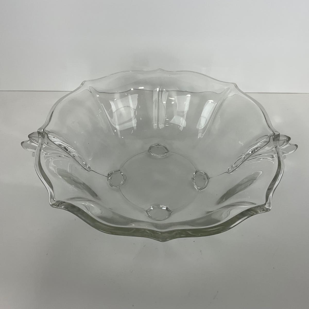 One large Baroque Fostoria Glass Co. (1936-1966) bowl. Please see photos for details and condition. ::: Shipping is available on this lot. If you require shipping you must let us know at the close of the auction. We will coordinate with you after the item has been won. Shipping fees will include insurance up to or exceeding the value of all items being mailed. If you have any questions regarding this lot please contact the auctioneer either via this website, by direct email or by phone. PICK UP TIMES and other important information can be found in the TERMS and DESCRIPTION of the auction. Please take a look for pertinent information. Thanks!