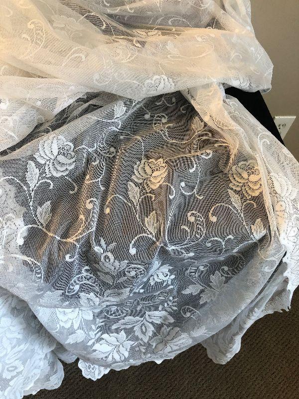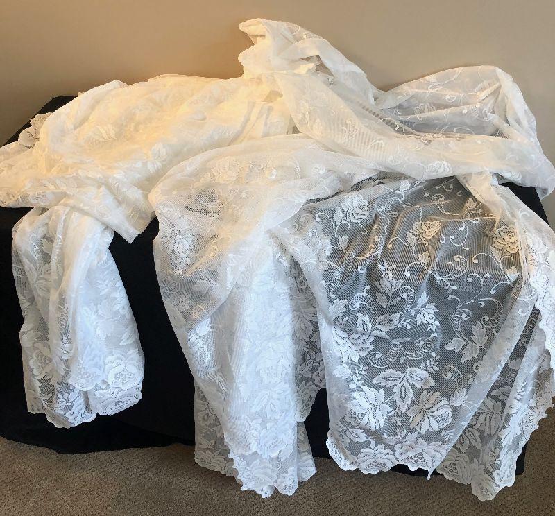 #56 Lace Curtains (3) plus 1 Valance.