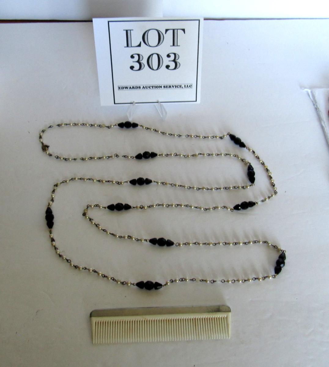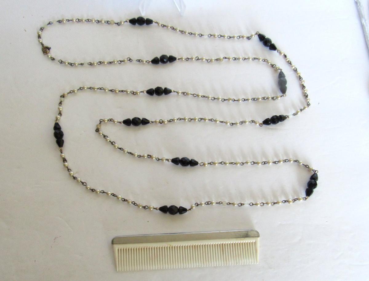 56" Long Flapper Style Necklace and Old Pocket Comb