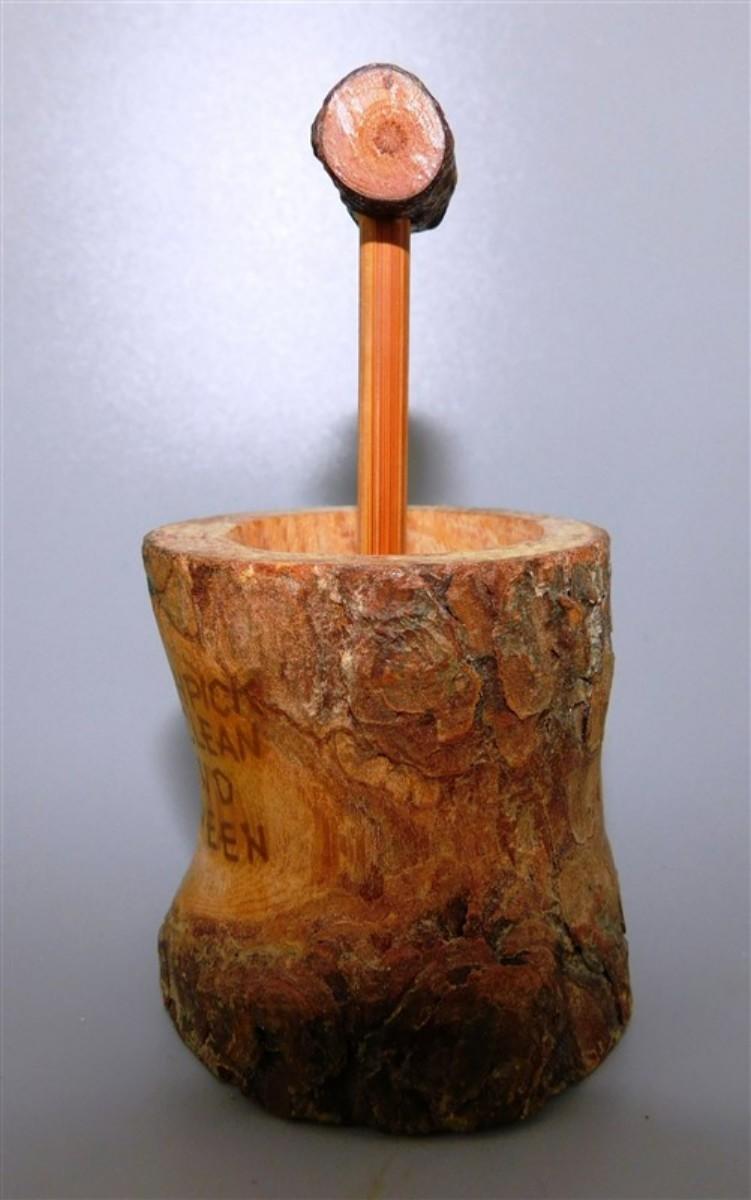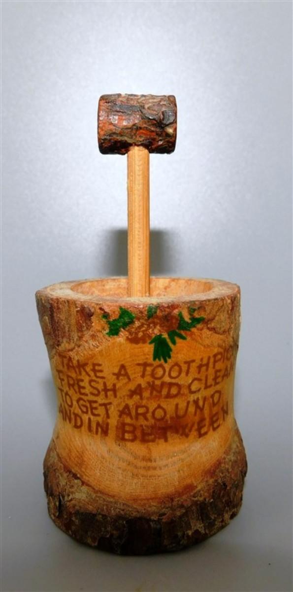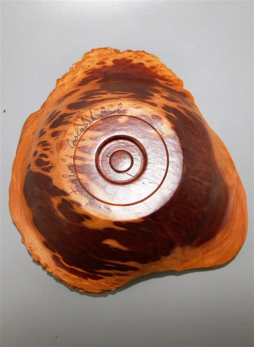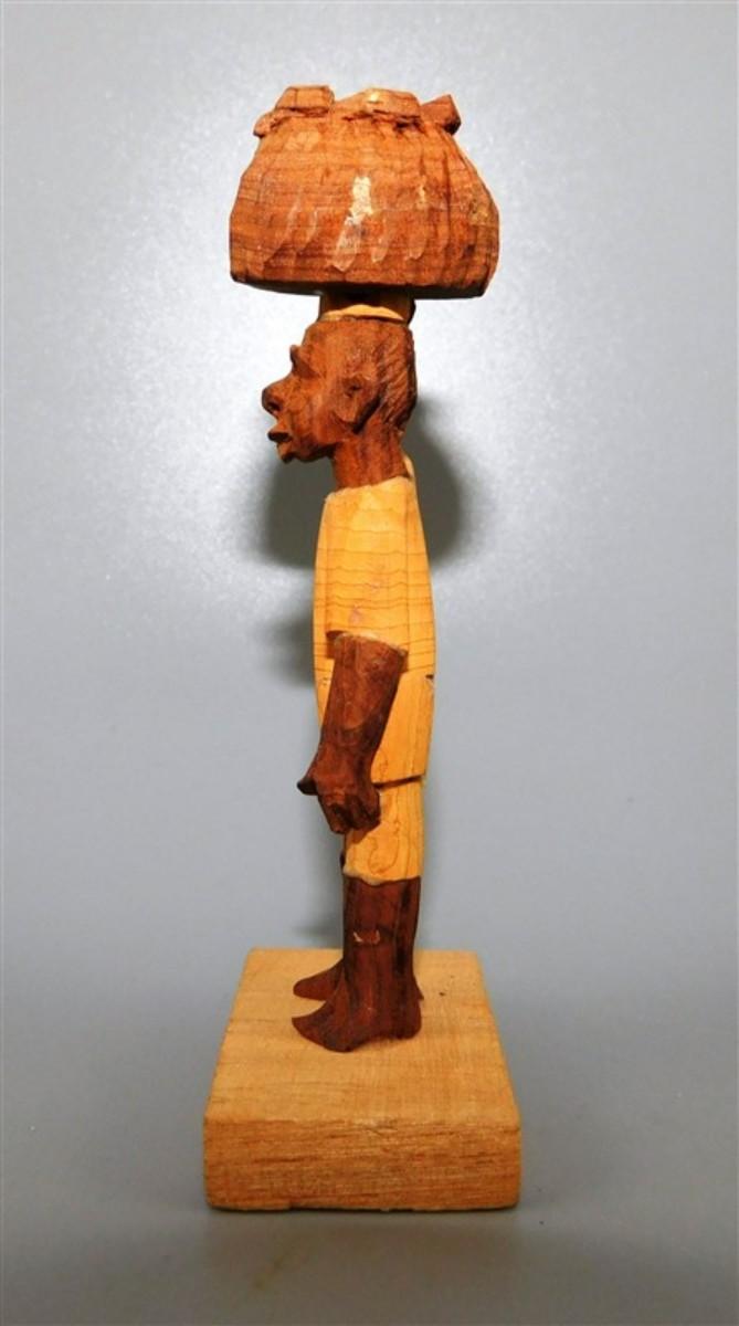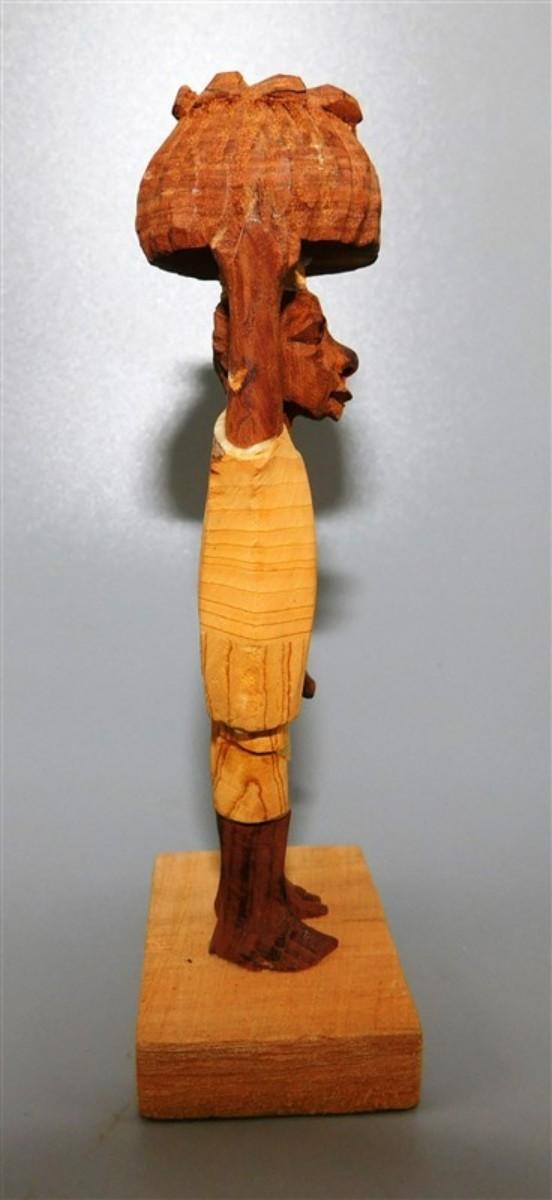 56 Lot of 3 Wood Items - Coolabah Burl Australia Bowl Ron Lecleve Derrigo / Toothpick Holder / Wooden Man Marked Nigeria 7 1/2 x 2