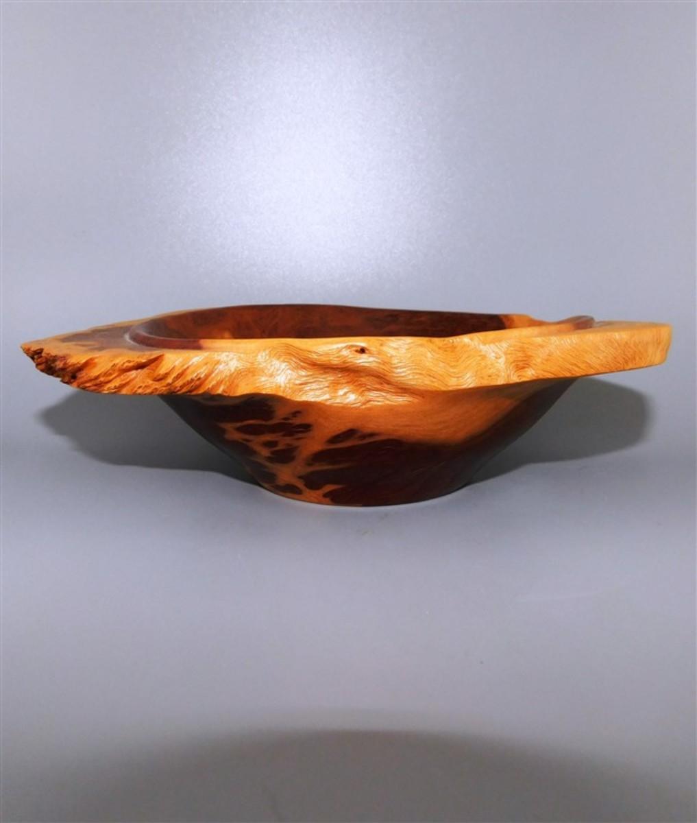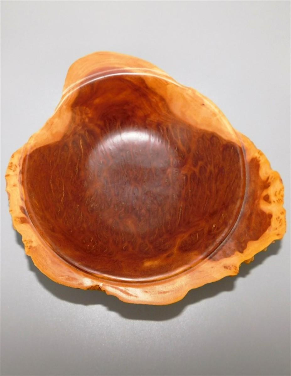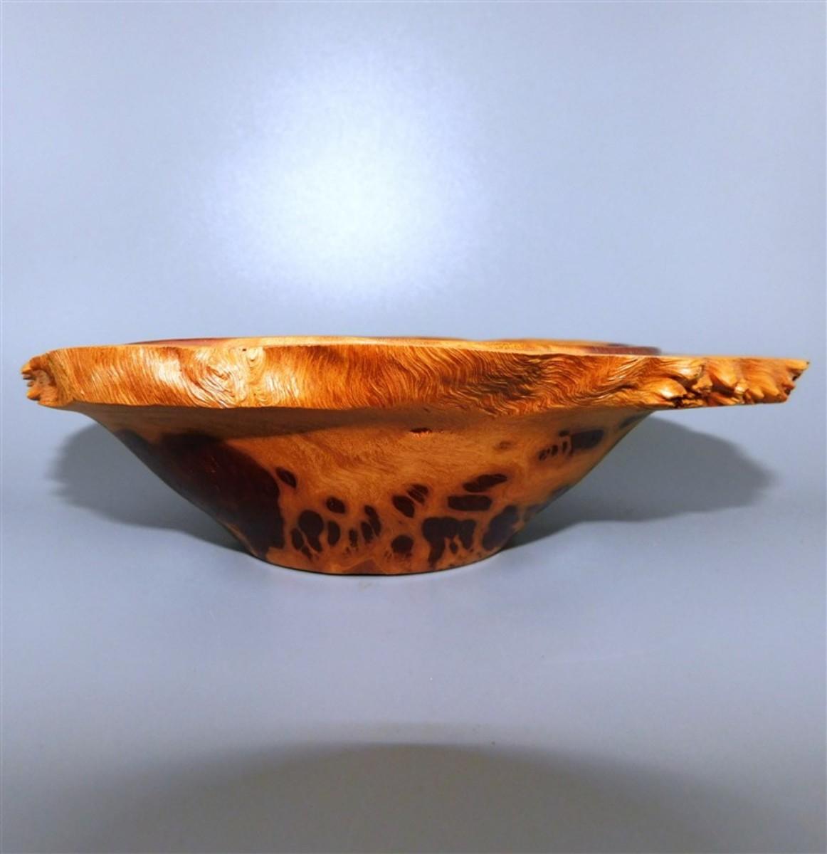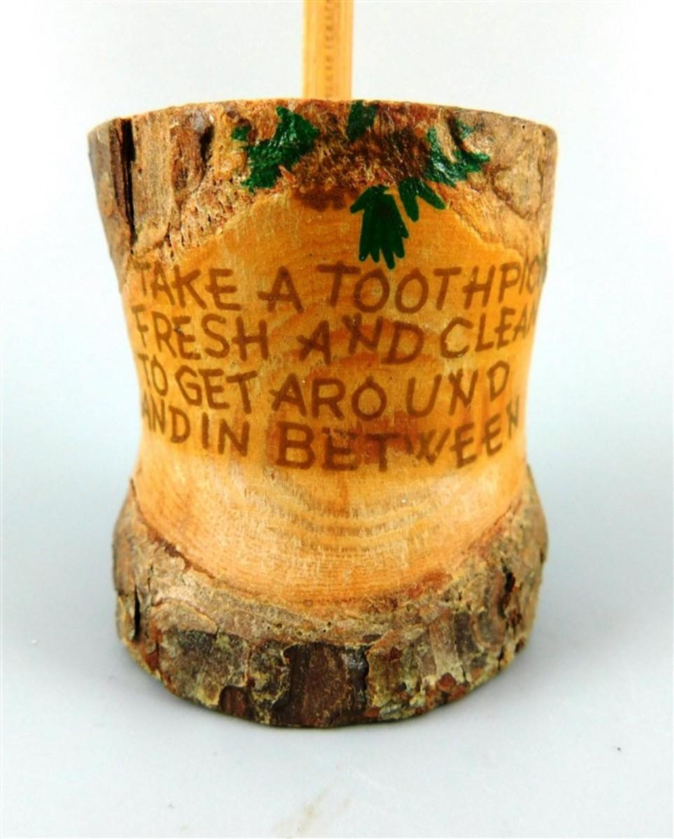 56 Lot of 3 Wood Items - Coolabah Burl Australia Bowl Ron Lecleve Derrigo / Toothpick Holder / Wooden Man Marked Nigeria 7 1/2 x 2