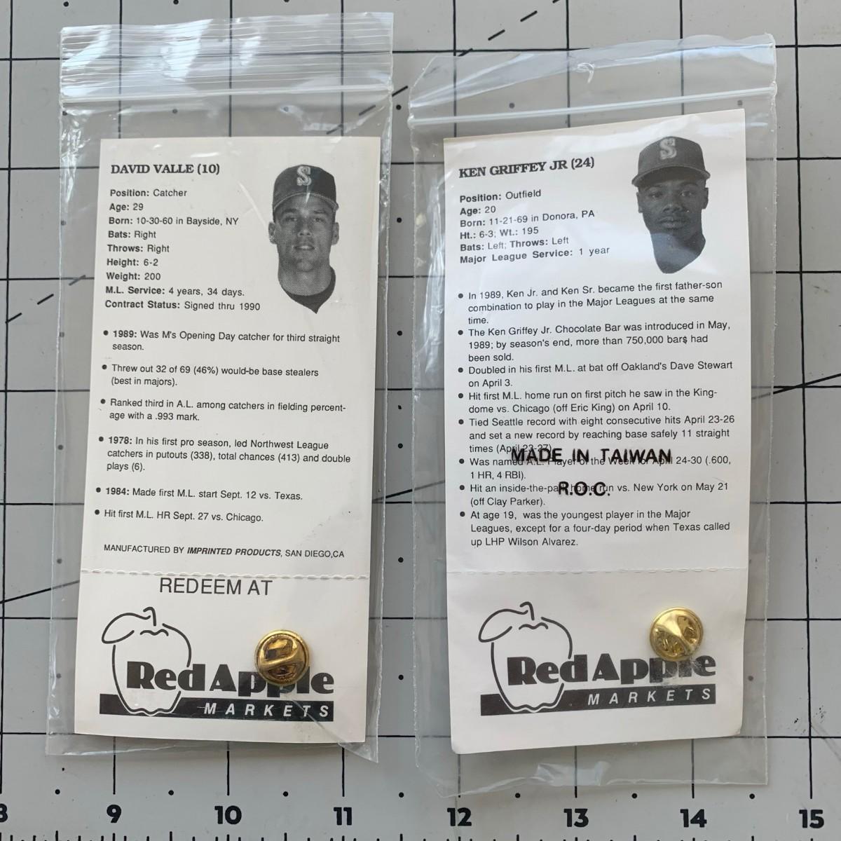 #56 Mariners Red Apple Baseball Pins SEALED 2pc