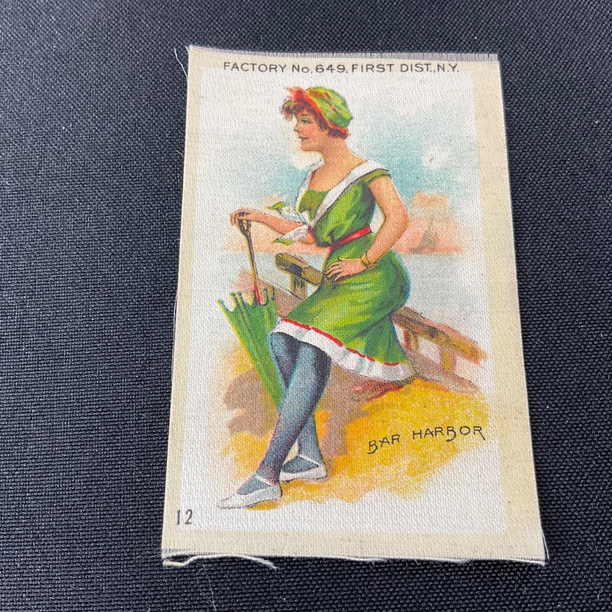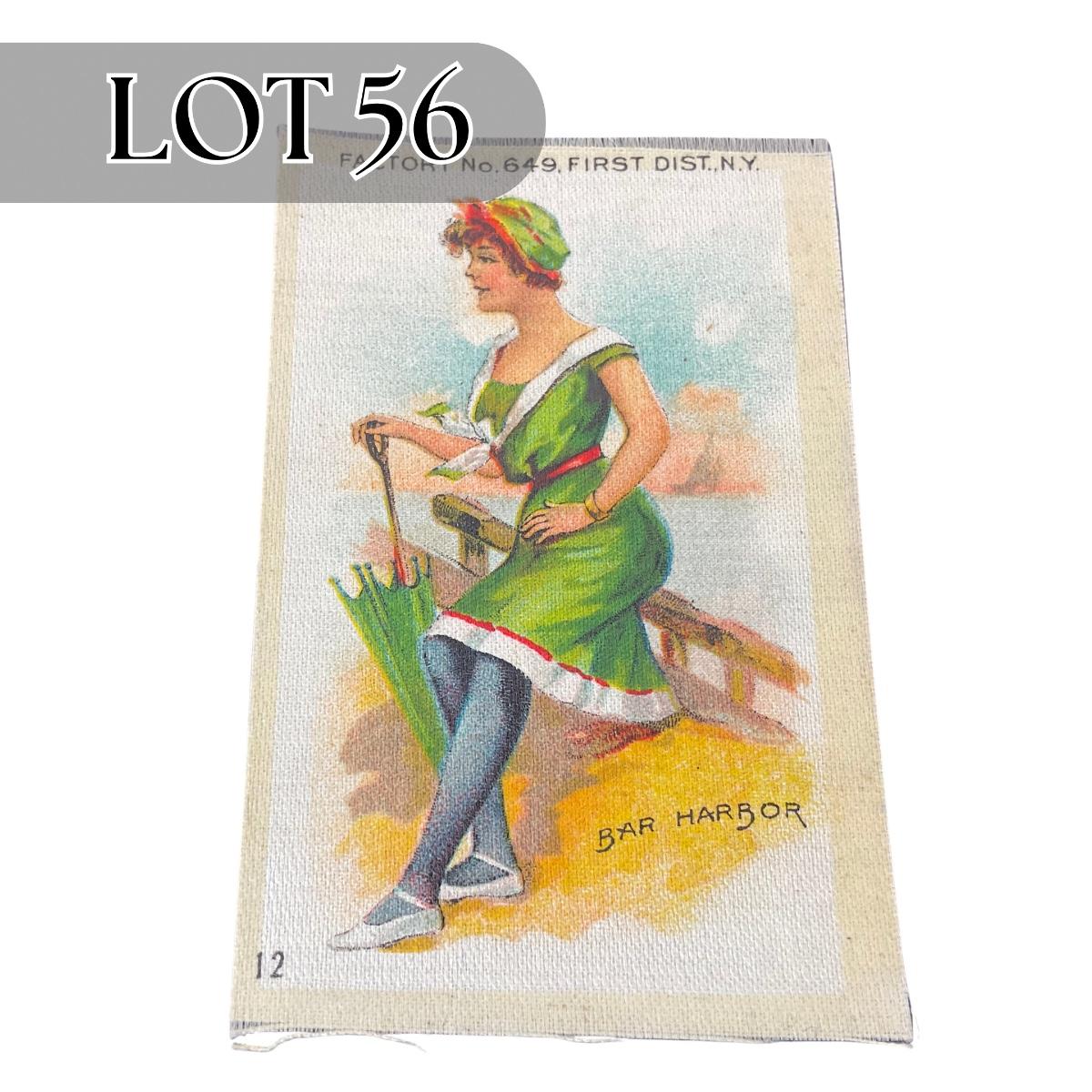 One antique Edwardian bathing beauty tobacco silk. #12 Bar Harbor silk. Please see photos for details and condition. Any condition statement is given as a courtesy to a client, is an opinion, and should not be treated as a statement of fact. Reference to condition written, oral or within a condition report shall not be regarded as a full account of condition and may not include all defects, alterations, or restorations. Absence of a condition report does not imply a lot is flawless or lacking imperfections or damage. Katherine’s Auction & Appraisal Service shall have no responsibility for any error or omission. Returns shall not be accepted on the basis of condition. ::: Shipping is available on this lot. If you require shipping you must let us know at the close of the auction. We will coordinate with you after the item has been won. Shipping fees will include insurance up to or exceeding the value of all items being mailed. If you have any questions regarding this lot please contact the auctioneer either via this website, by direct email or by phone. PICK UP TIMES and other important information can be found in the TERMS and DESCRIPTION of the auction. Please take a look for pertinent information. Thanks!
