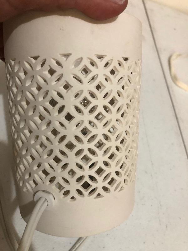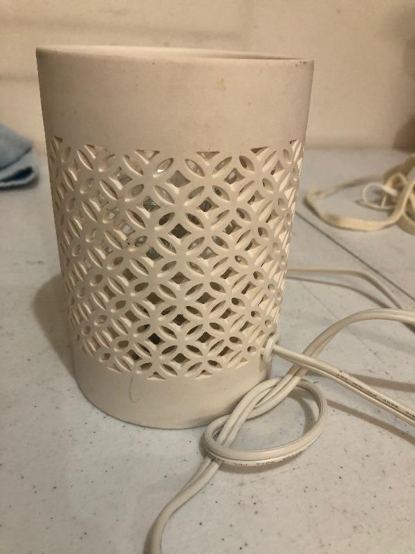 Cute white cut out lamp measures 5 1/2 x 4î works. This is an ONSITE Auction all items will need to be picked up on location. Please see auction description for pick up procedures.