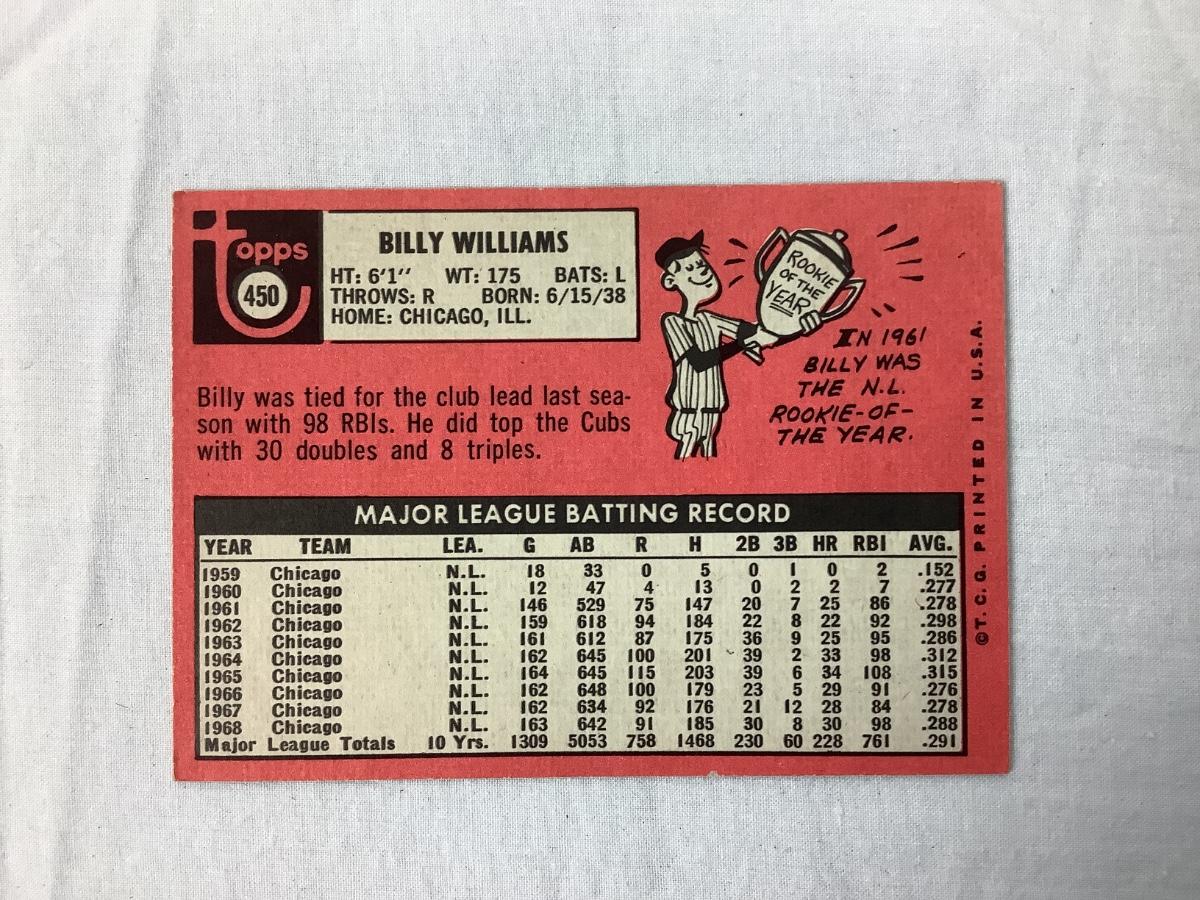 Vintage 1969 Topps Chewing Gum Billy Williams, Chicago Cubs #450 Baseball Card.