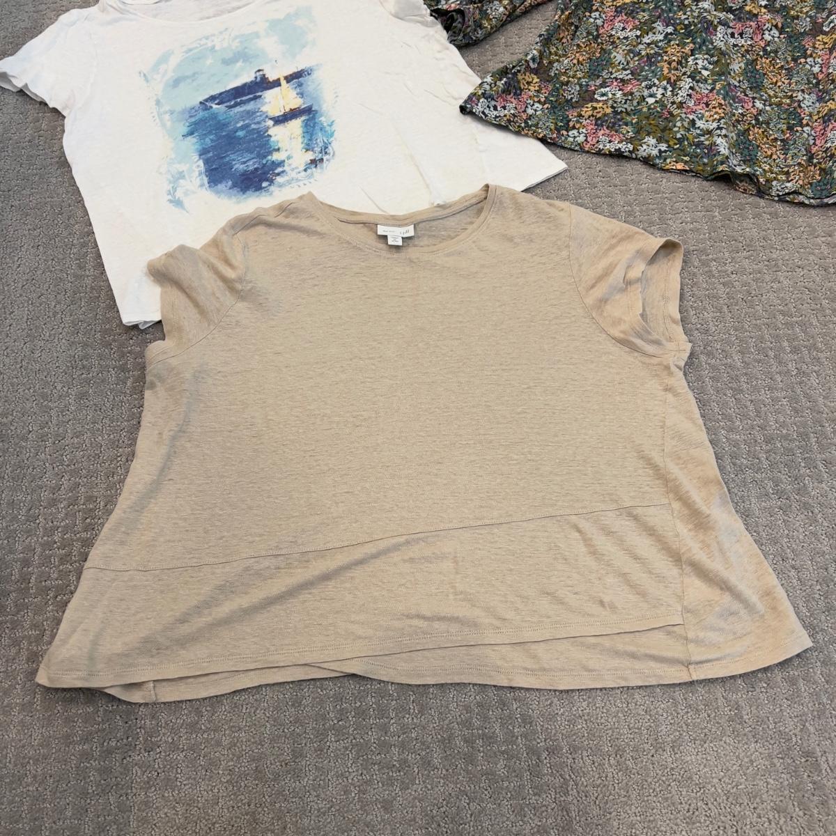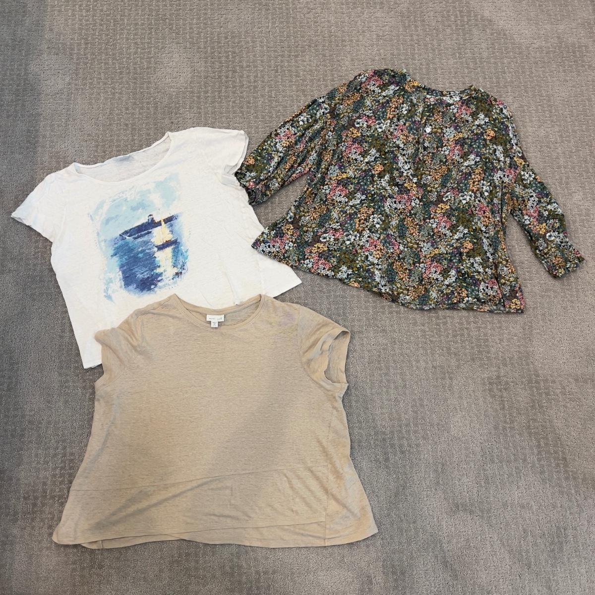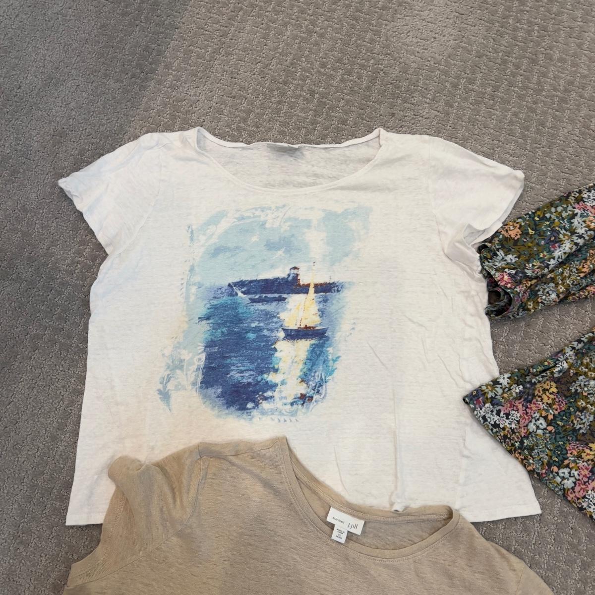 Sailboat cotton knit , with floral long sleeve poly mix top and tan short sleeve top