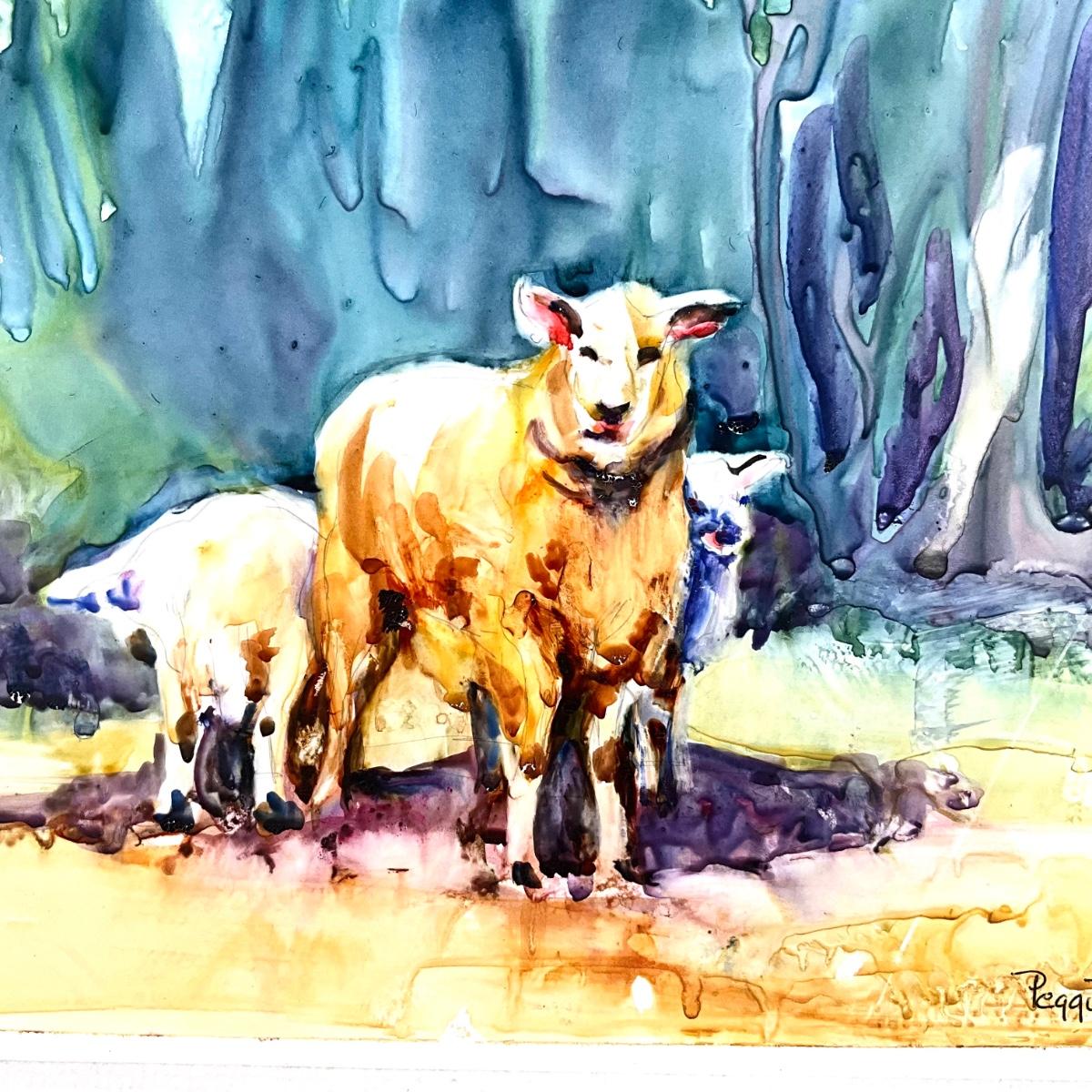 561 Original Artwork Monotype Print of Sheep by Peggy Blades