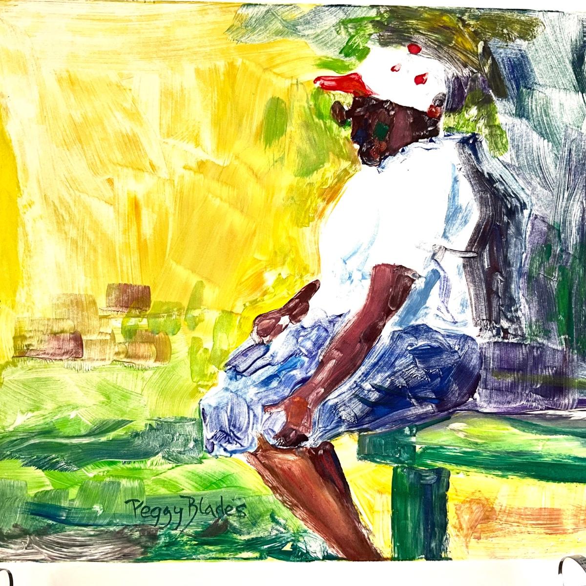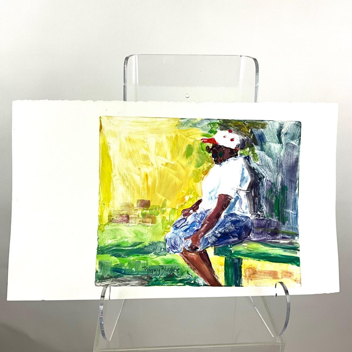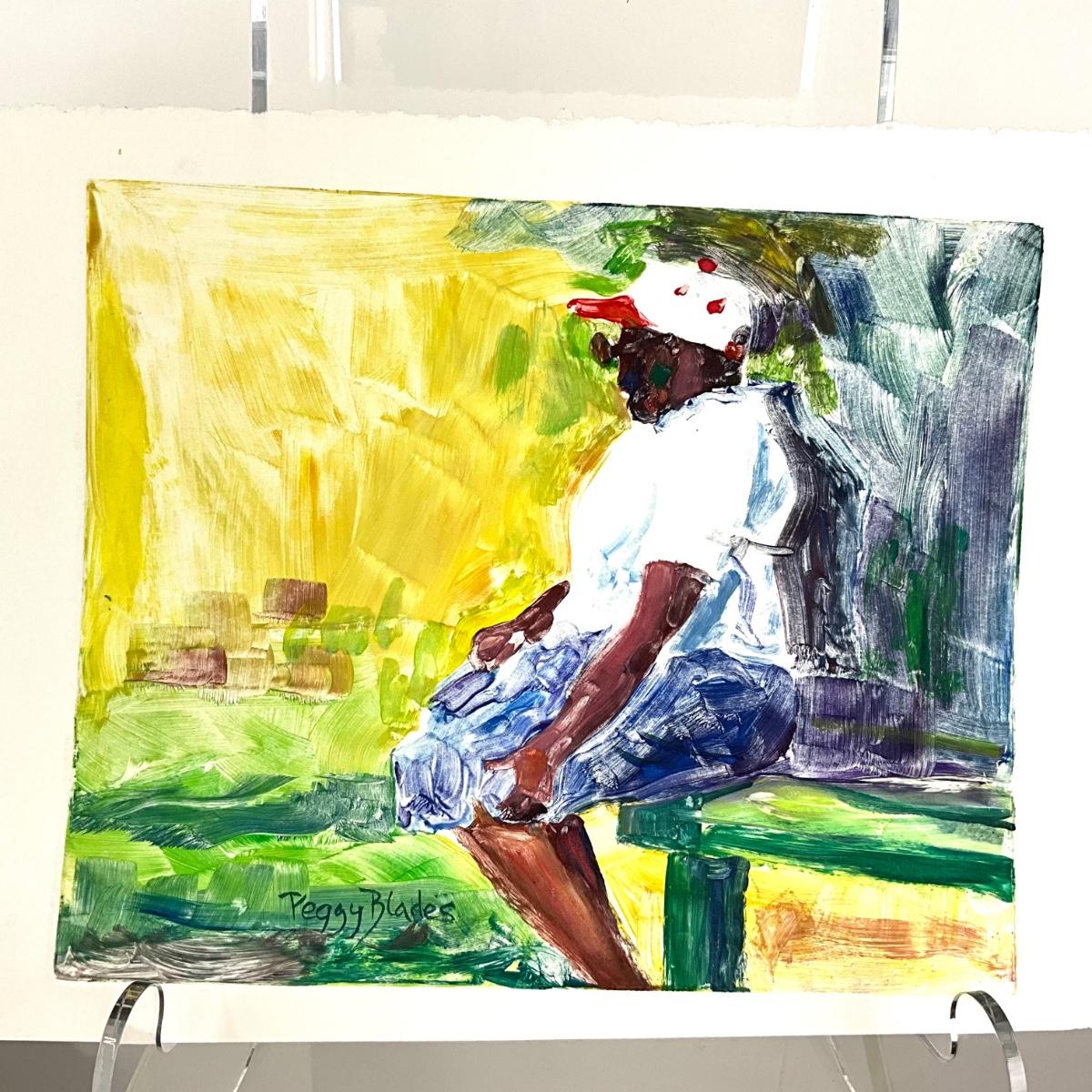 562 Original Artwork Monotype Print of Lady on Bench by Peggy Blades