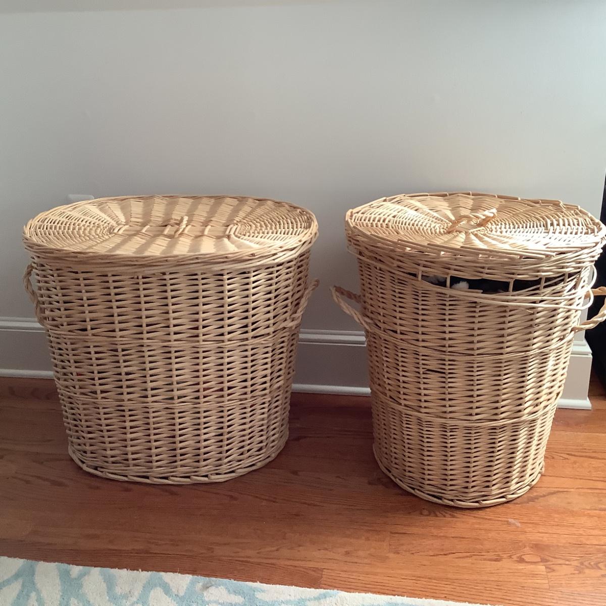 564 Pair of Vintage Wicker Laundry Baskets with Lids