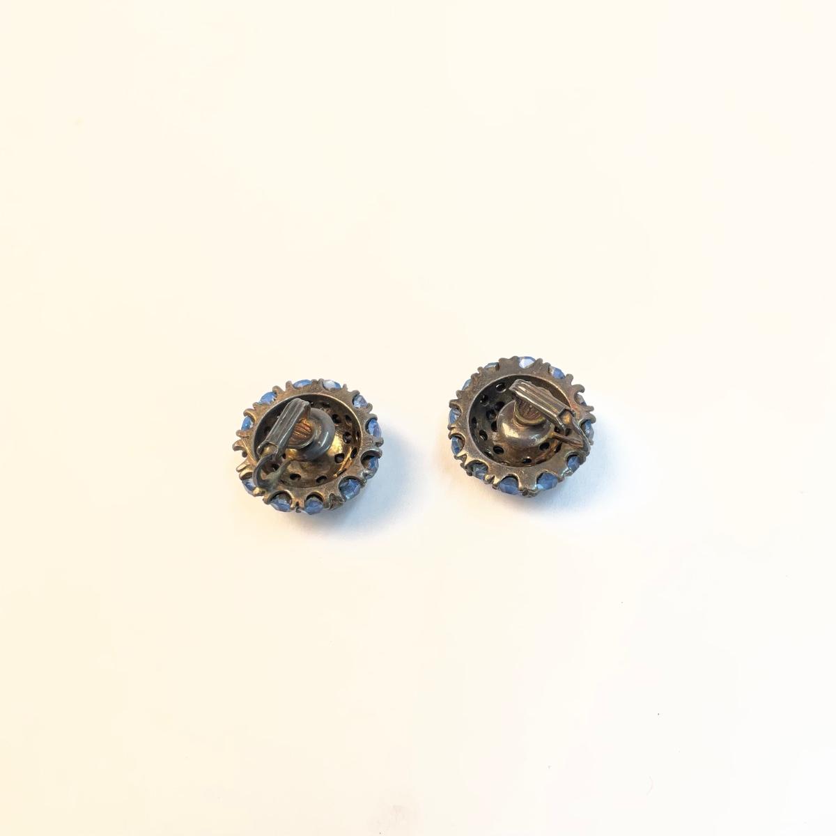 564 Vintage Pennino Sterling flower pin with blue rhinestones & matching earrings