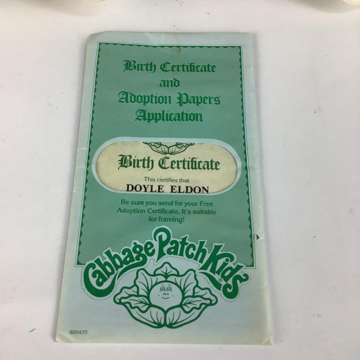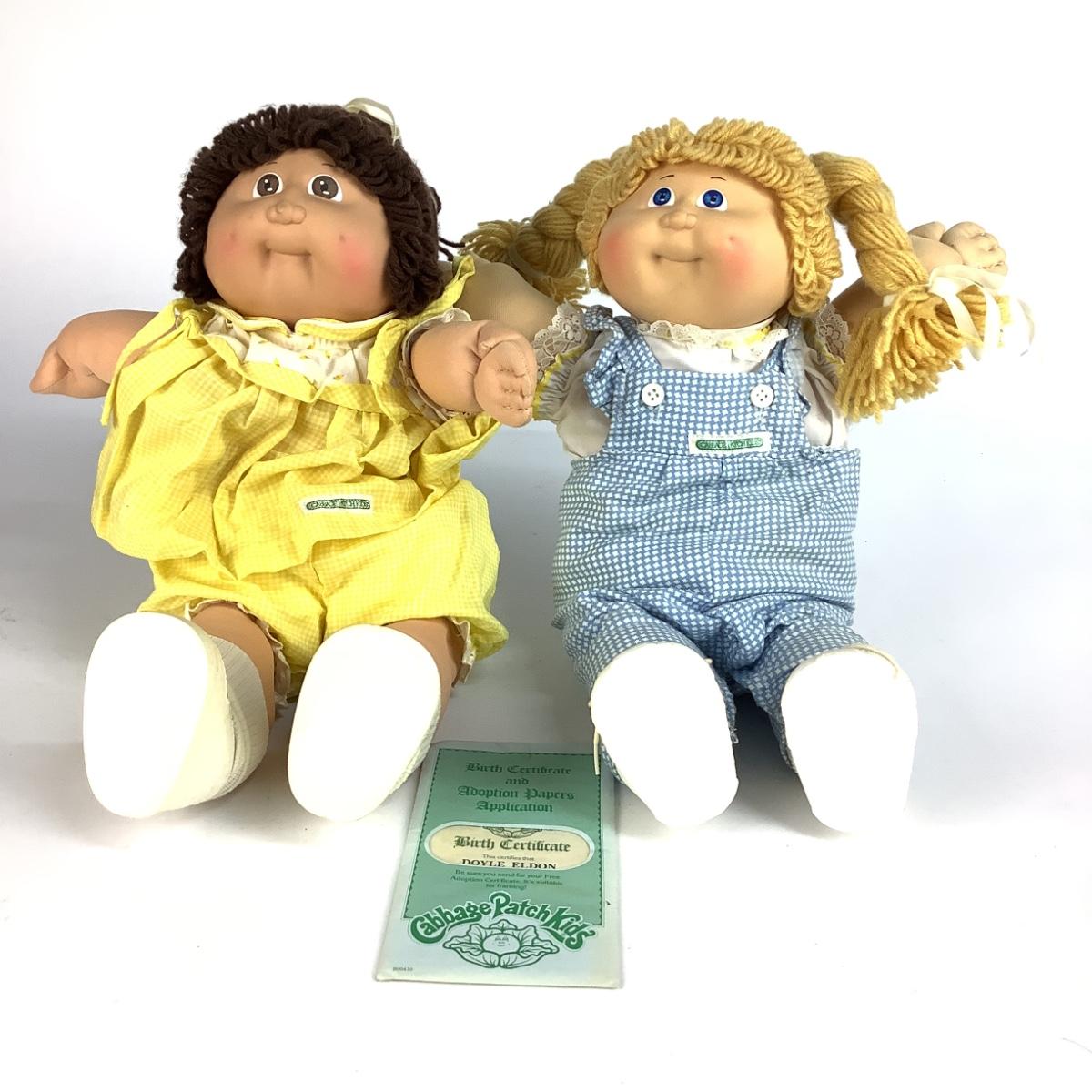 Coleco Cabbage Patch Kid dolls with hard face molds, two black signatures and one birth certificate.