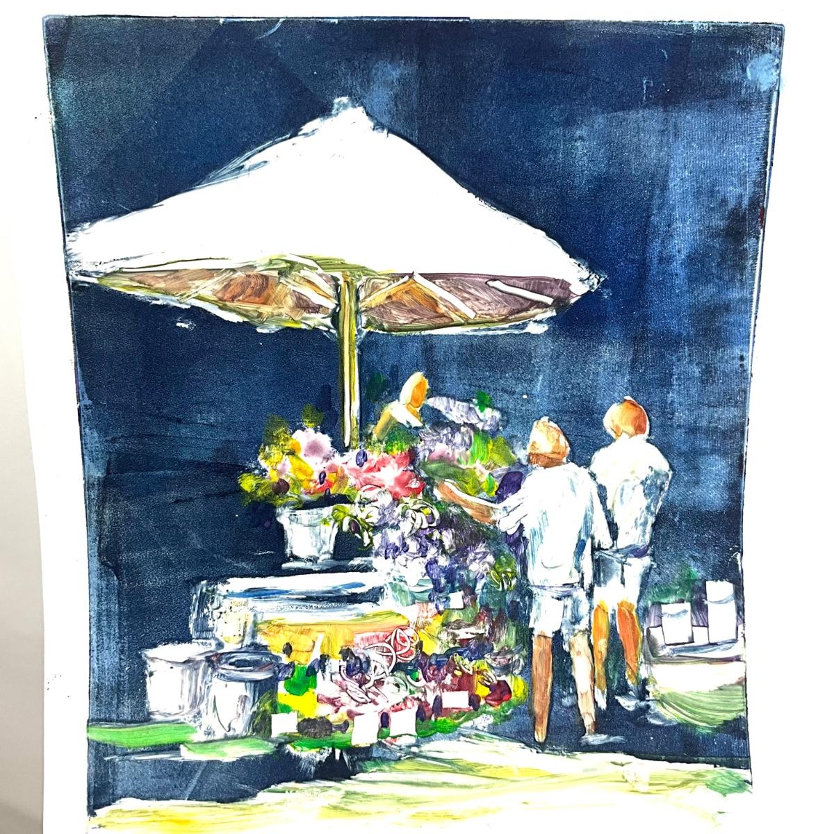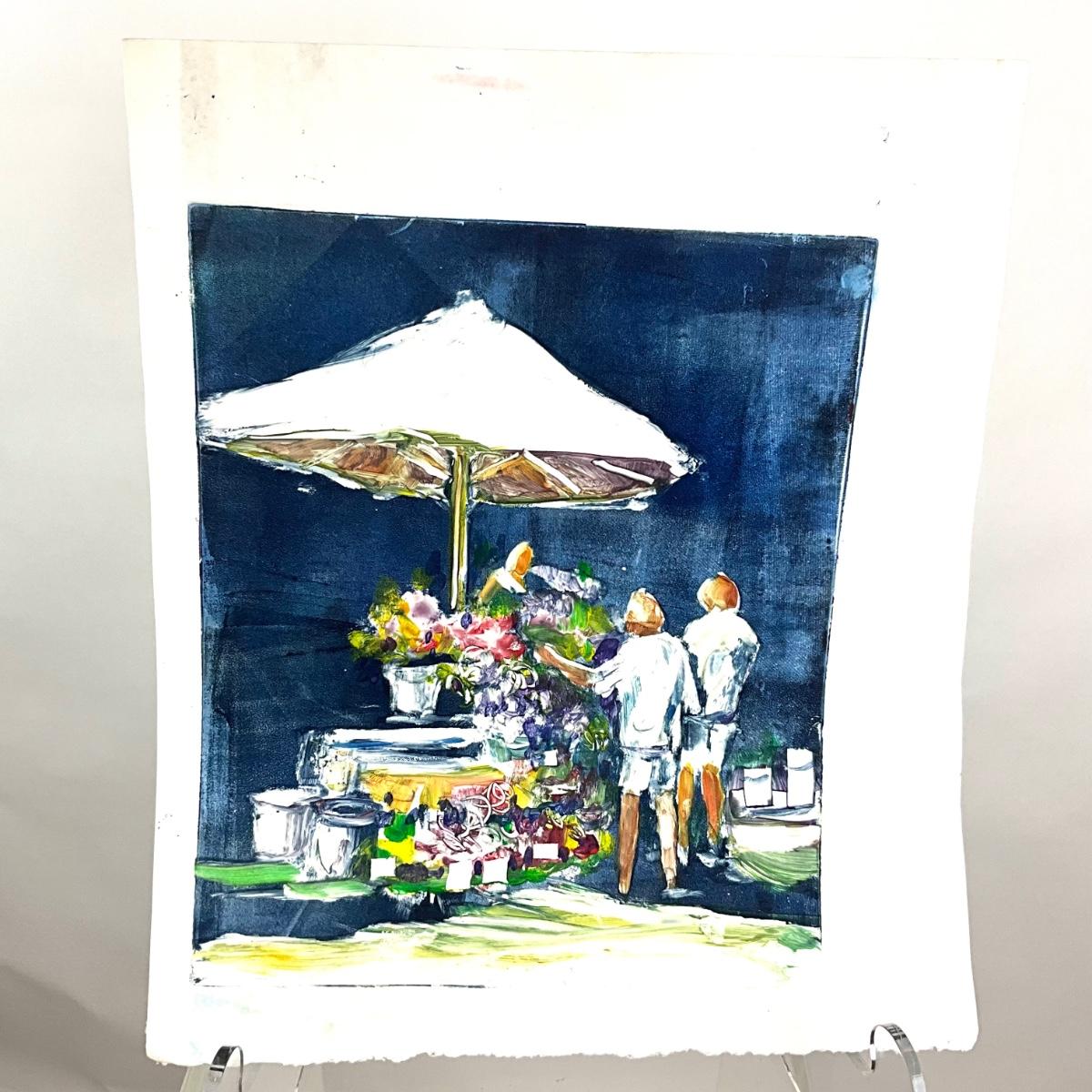 567 Original Artwork Monotype Print of Flower Mart by Peggy Blades
