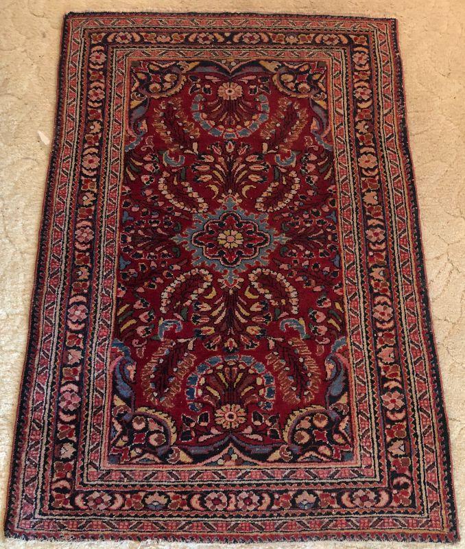 41 x 62 NO Fringe worn off, wool and cotton Needs a cleaning - sold as found
