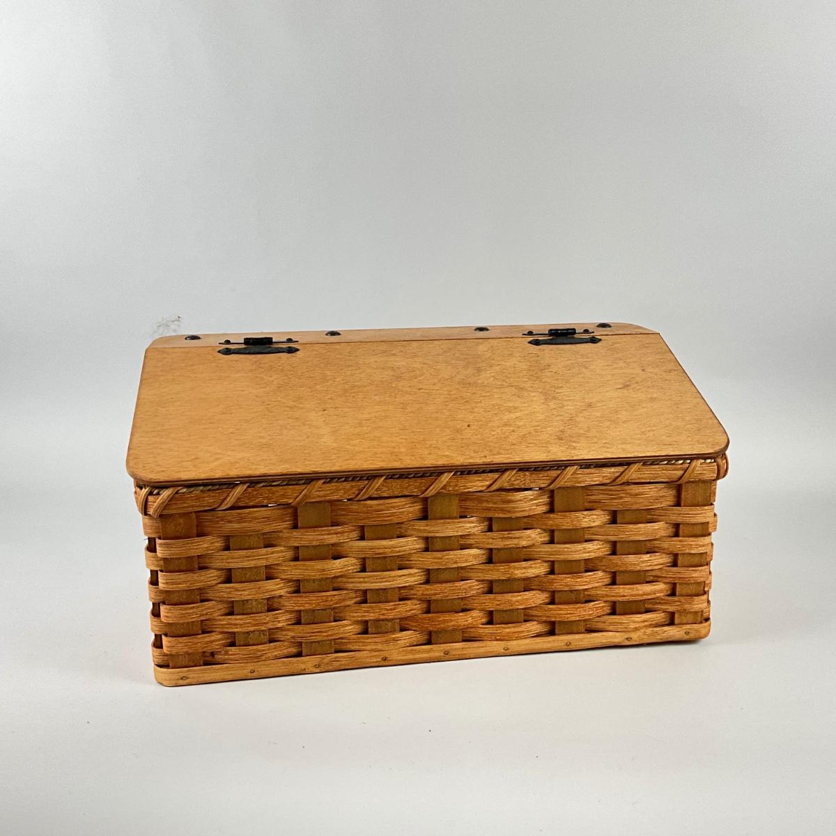 568 Vintage Rectangle Amish Handmade Lidded Basket by Gingerich