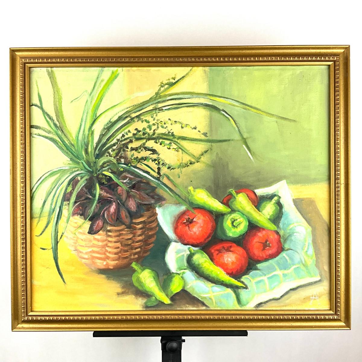 569 Signed Acrylic On Canvas Still Life titled "Peppers"