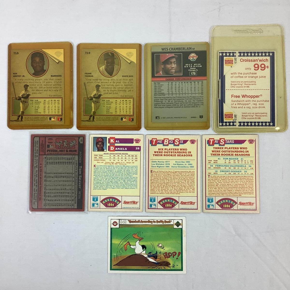 569  Assorted Lot of Baseball Cards 1986 Sportflics #43, 47, 48. 1991 Leaf Wes Chamberlain #178, 1986 BK Mike Schmidt #5-20, 1980 BK Topps Tom Seaver #10, & Daffy Duck #549