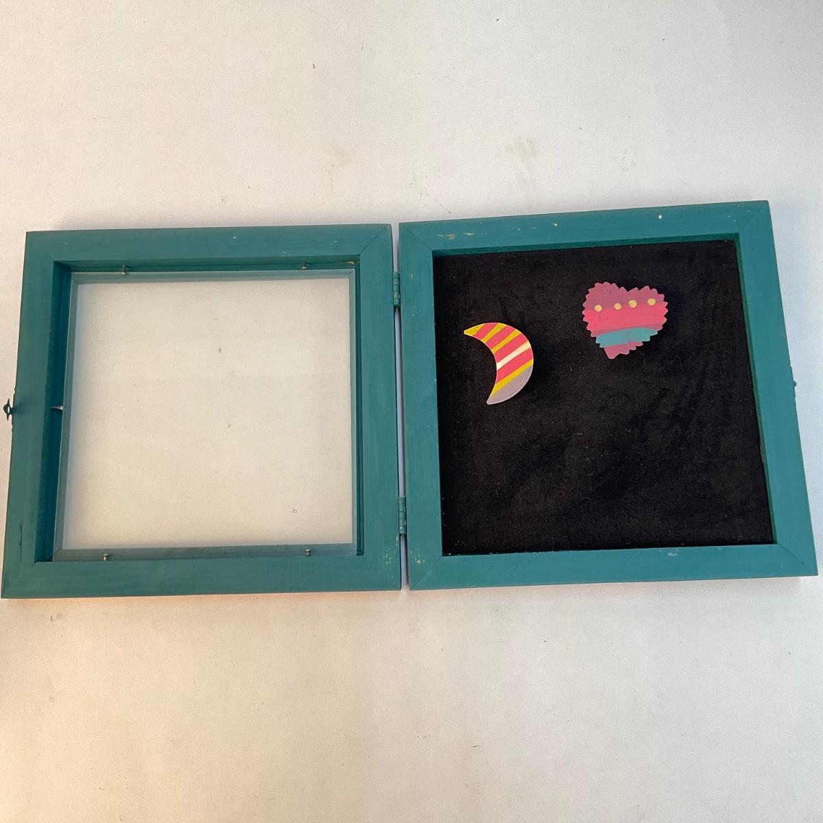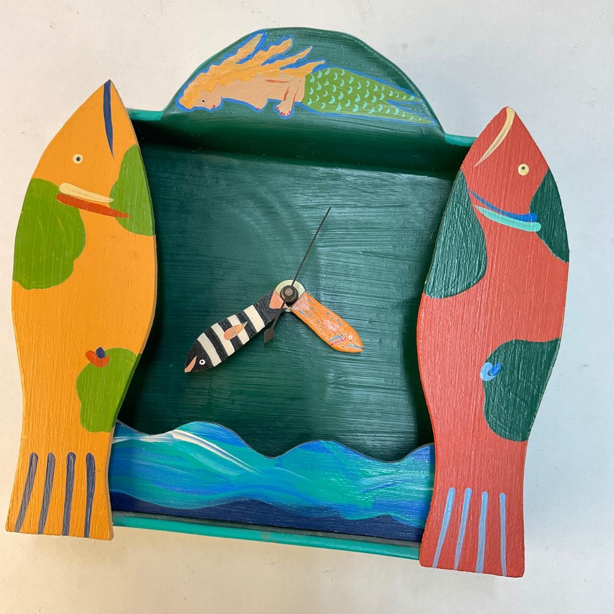 569 Handpainted Fish Clock and Ivan Barnett Pins in Shadow Box