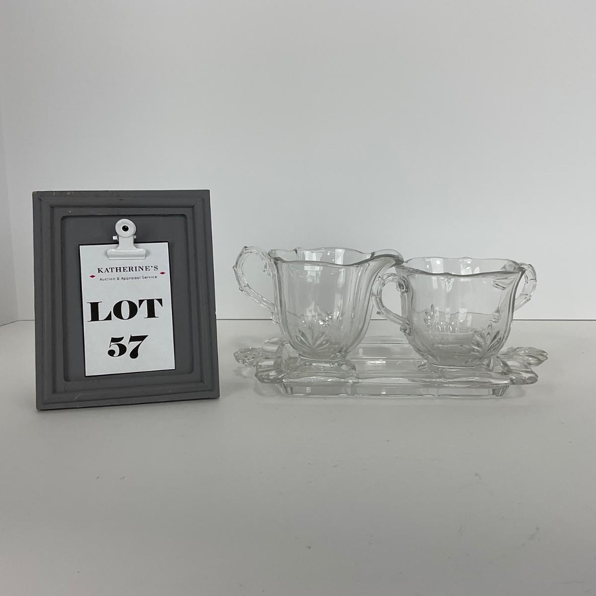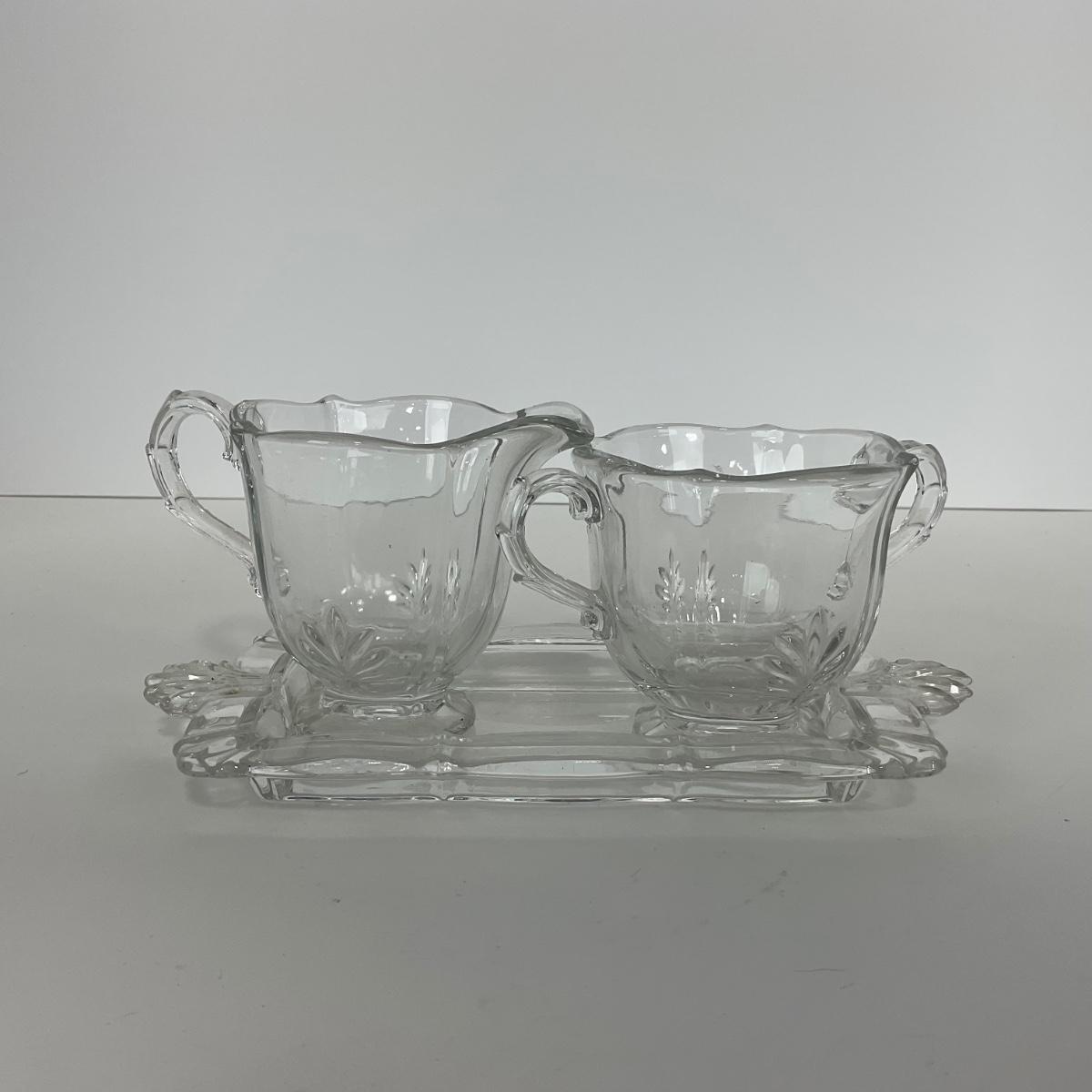 -57- GLASSWARE | Fostoria Glass Co. Baroque | Creamer, Sugar, & Tray