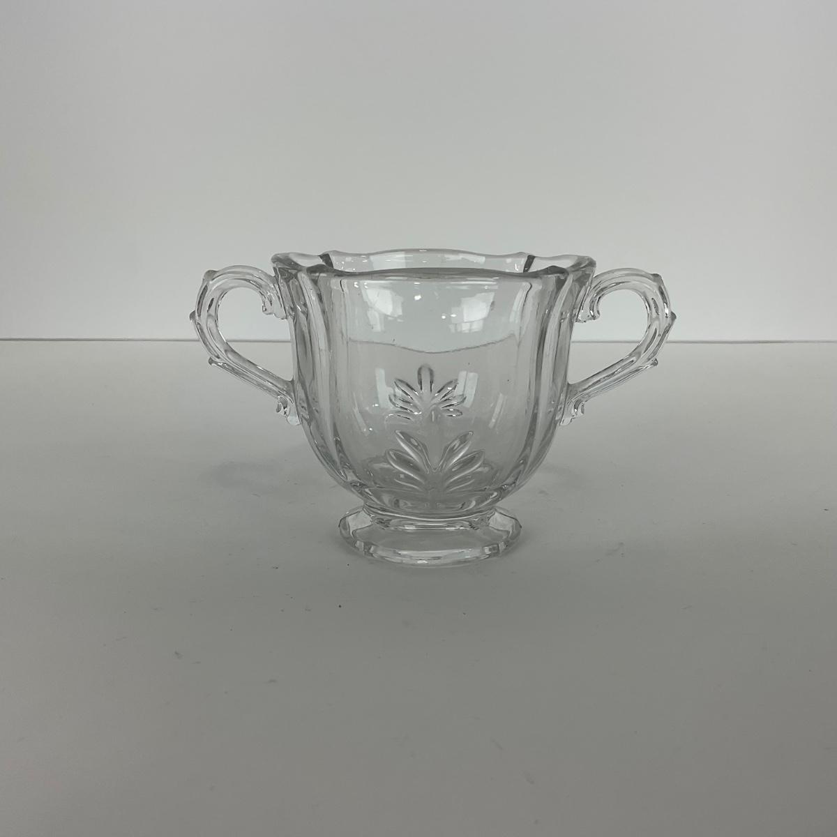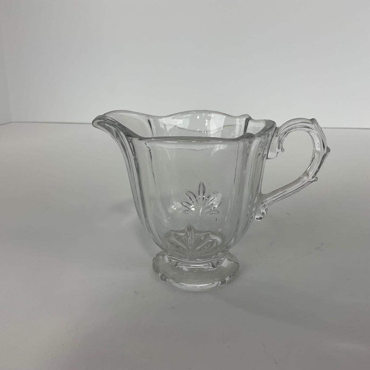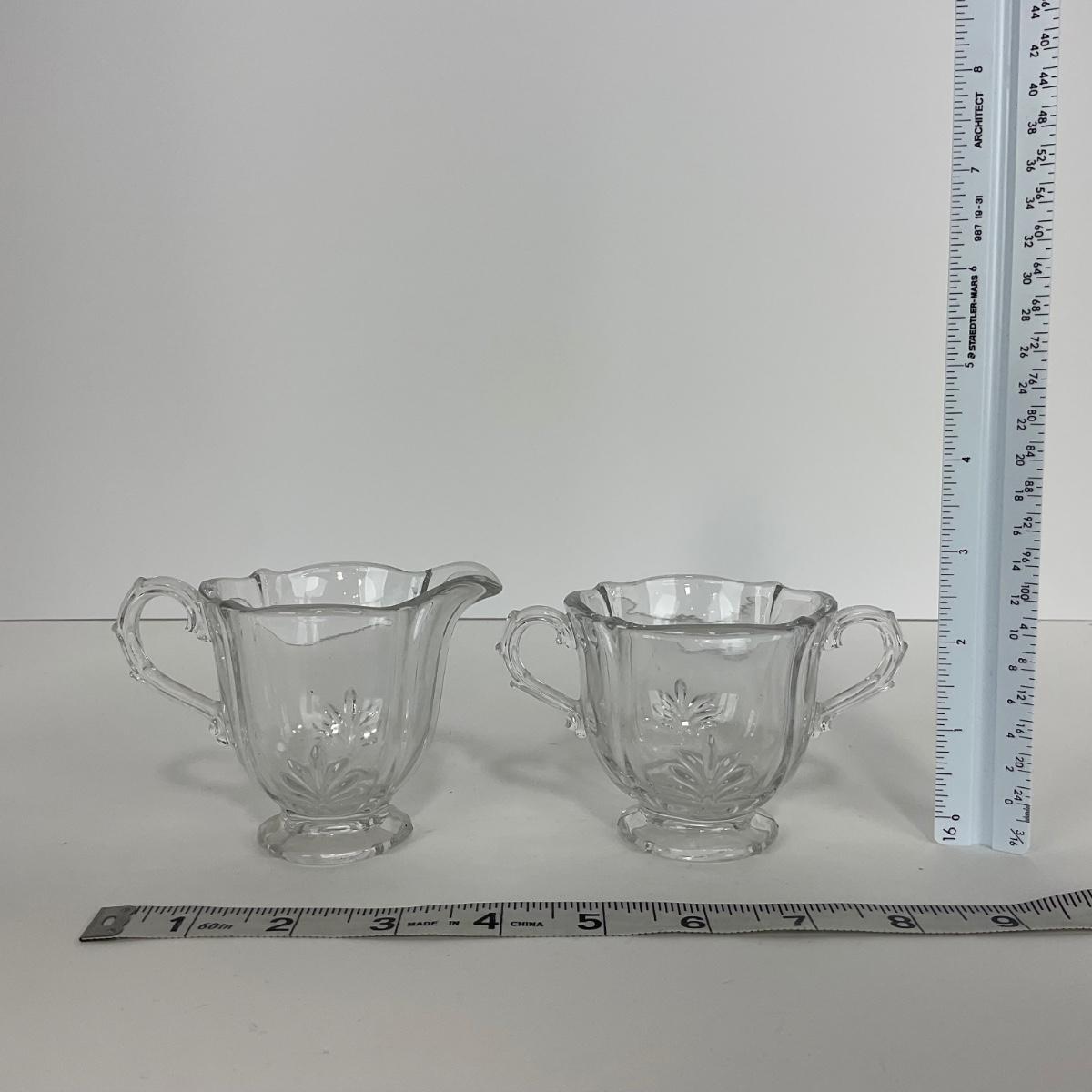 Three piece set from Fostoria Glass Co. Baroque including a creamer, sugar, and tray. Please see photos for details and condition. ::: Shipping is available on this lot. If you require shipping you must let us know at the close of the auction. We will coordinate with you after the item has been won. Shipping fees will include insurance up to or exceeding the value of all items being mailed. If you have any questions regarding this lot please contact the auctioneer either via this website, by direct email or by phone. PICK UP TIMES and other important information can be found in the TERMS and DESCRIPTION of the auction. Please take a look for pertinent information. Thanks!