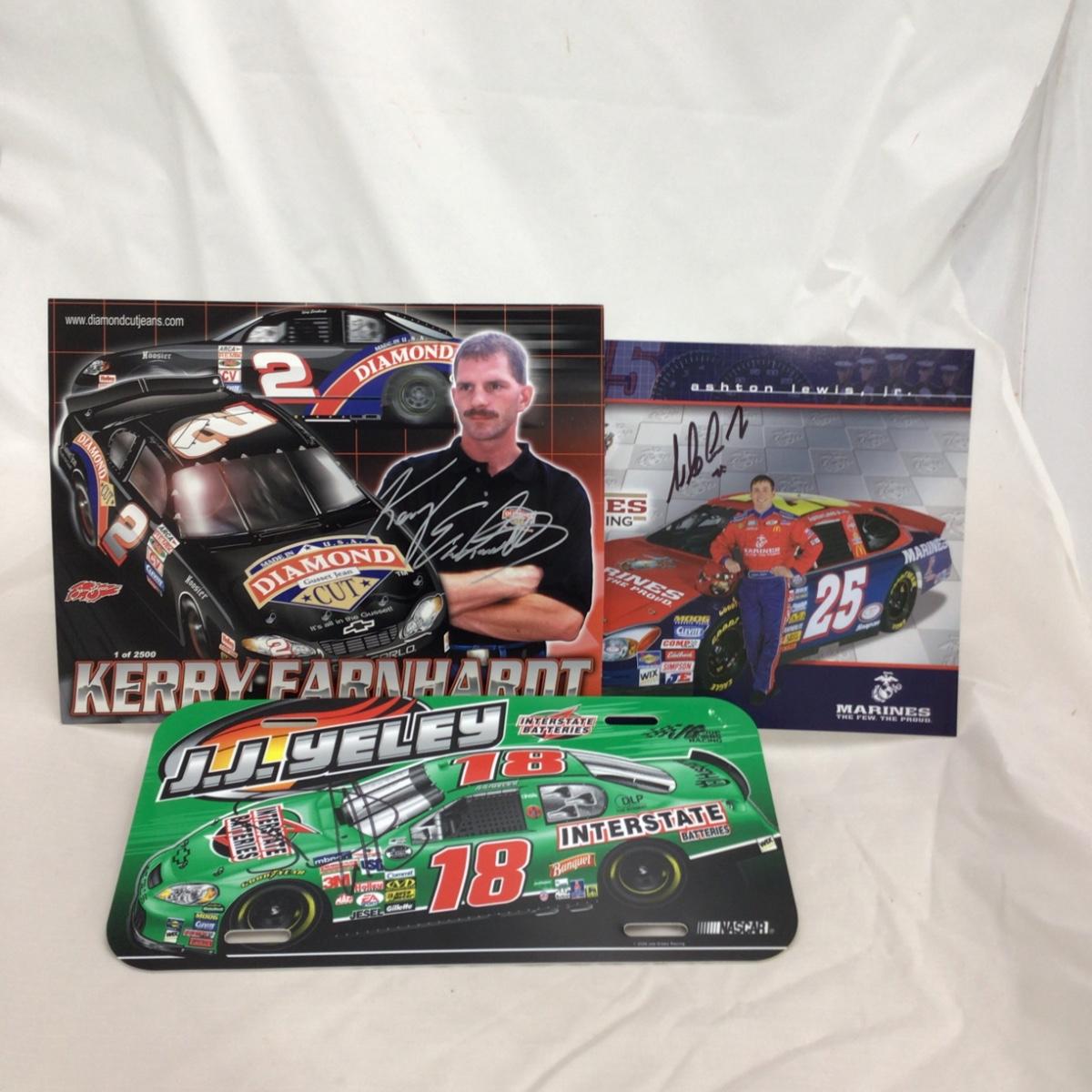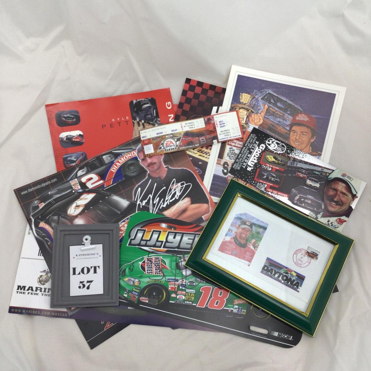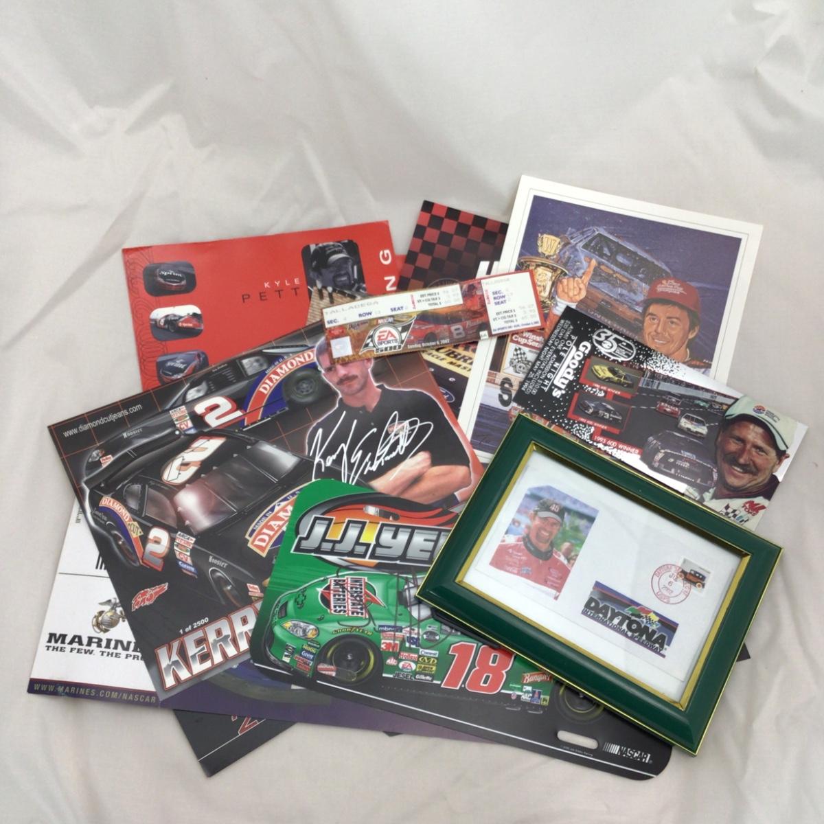 Signed Nascar driver cards with no certificate of authenticity, two Nascar tickets and a framed Kyle Petty stamp. Signed items are assumed authentic but not guaranteed. Please see photos for details and condition. ::: Shipping is available on this lot. If you require shipping you must let us know at the close of the auction. We will coordinate with you after the item has been won. Shipping fees will include insurance up to or exceeding the value of all items being mailed. If you have any questions regarding this lot please contact the auctioneer either via this website, by direct email or by phone. PICK UP TIMES and other important information can be found in the TERMS and DESCRIPTION of the auction. Please take a look for pertinent information. Thanks! .