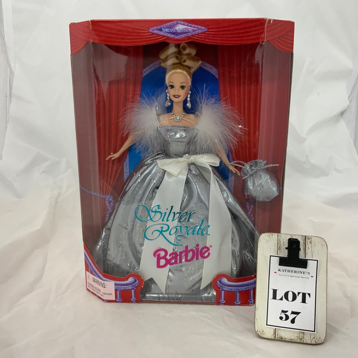 Special Edition Silver Royale Barbie, released in 1996. She looks stunning with her perfectly impractical bag by her side! New, in Box. Please see photos for details and condition. !!! Proceeds from this auction will be donated to the NEW COMMUNITY SHELTER in Green Bay, Wisconsin. Please see Sale Description to the Left for more information. !!! ::: Shipping is available on this lot. If you require shipping you must let us know at the close of the auction. We will coordinate with you after the item has been won. Shipping fees will include insurance up to or exceeding the value of all items being mailed. If you have any questions regarding this lot please contact the auctioneer either via this website, by direct email or by phone. PICK UP TIMES and other important information can be found in the TERMS and DESCRIPTION of the auction. Please take a look for pertinent information. Thanks!