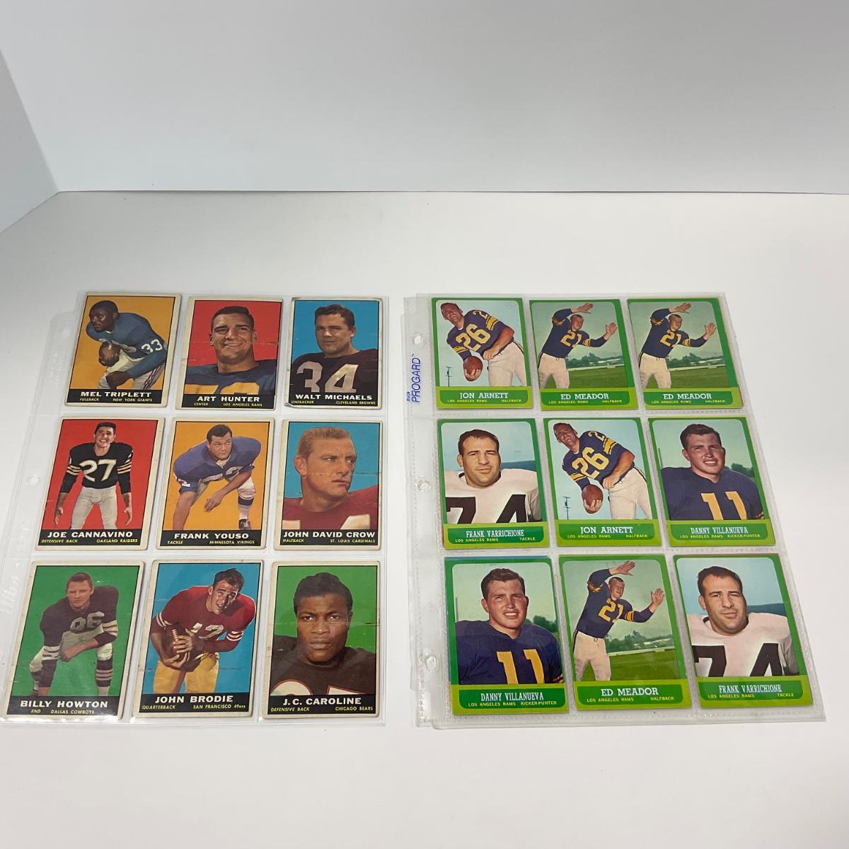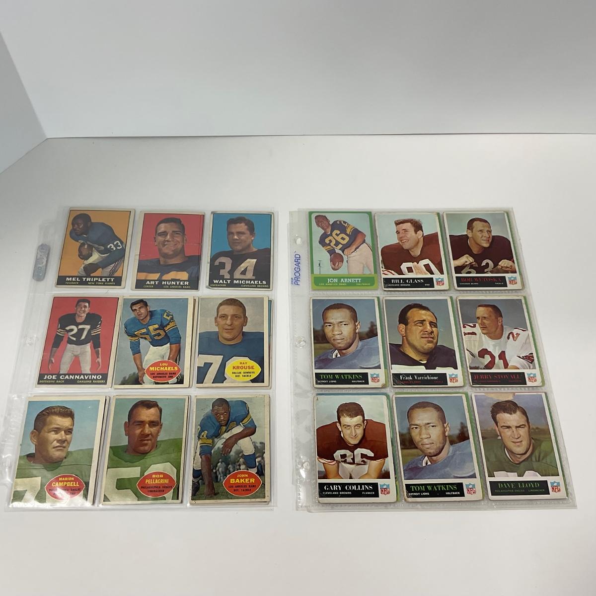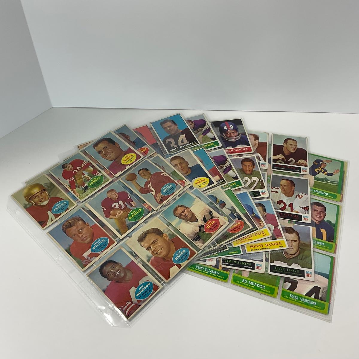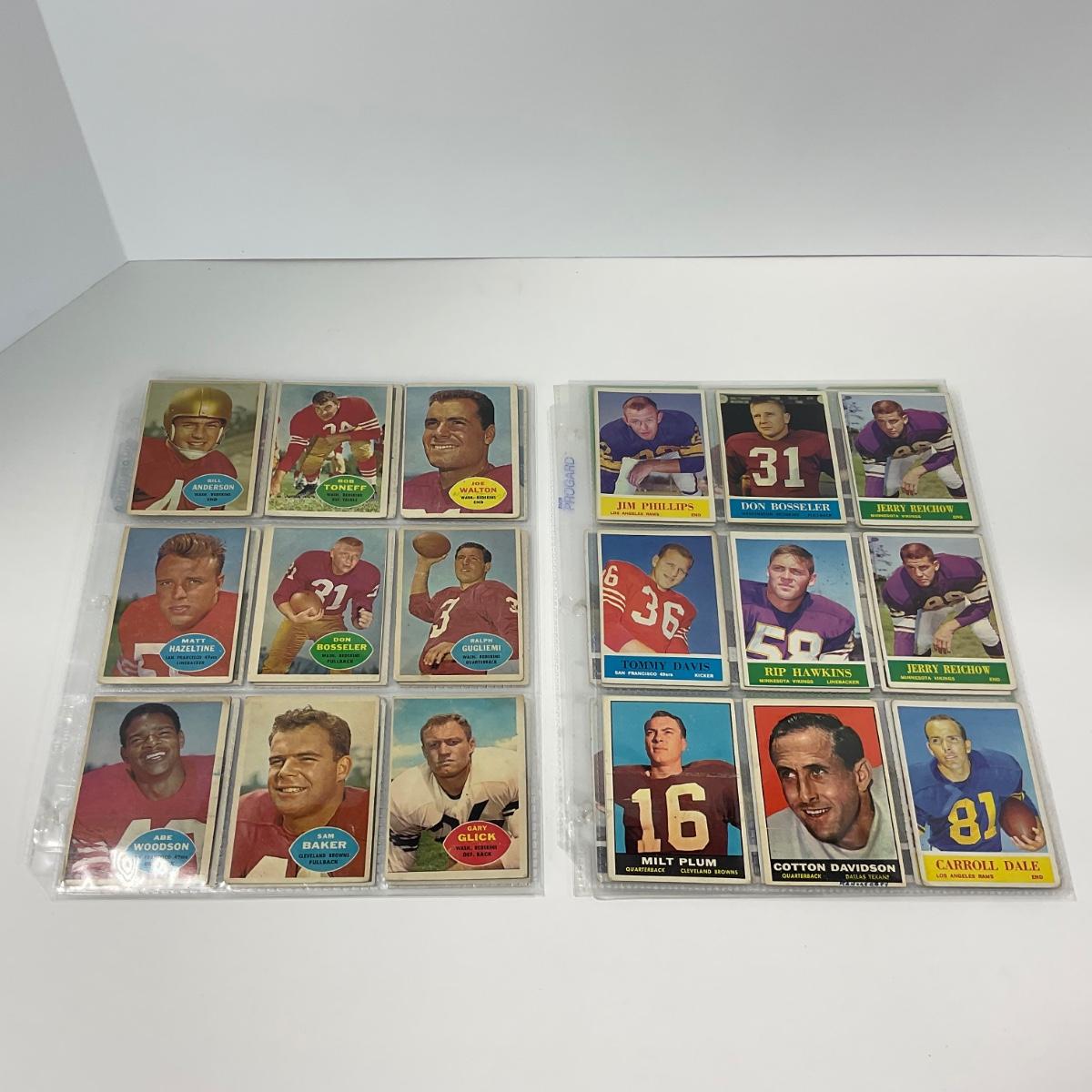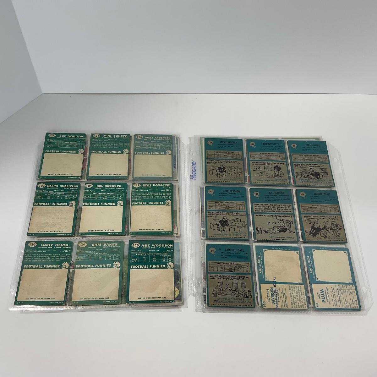 Nine pages of vintage 1960’s football cards (not all pages are completely full). Please see photos for details and condition. ::: Shipping is available on this lot. If you require shipping you must let us know at the close of the auction. We will coordinate with you after the item has been won. Shipping fees will include insurance up to or exceeding the value of all items being mailed. If you have any questions regarding this lot please contact the auctioneer either via this website, by direct email or by phone. PICK UP TIMES and other important information can be found in the TERMS and DESCRIPTION of the auction. Please take a look for pertinent information. Thanks!