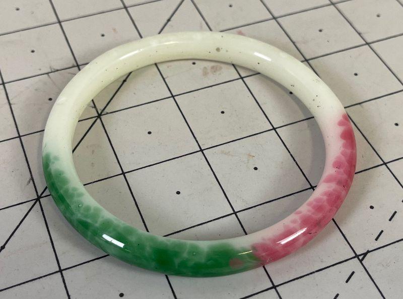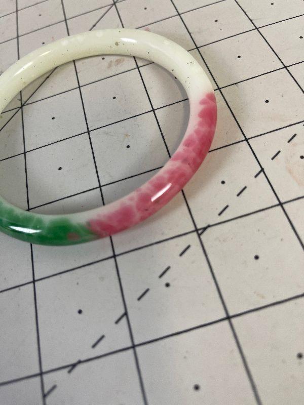 Possibly Jade or Watermelon Tourmaline But not identified. Could be a lovely rare