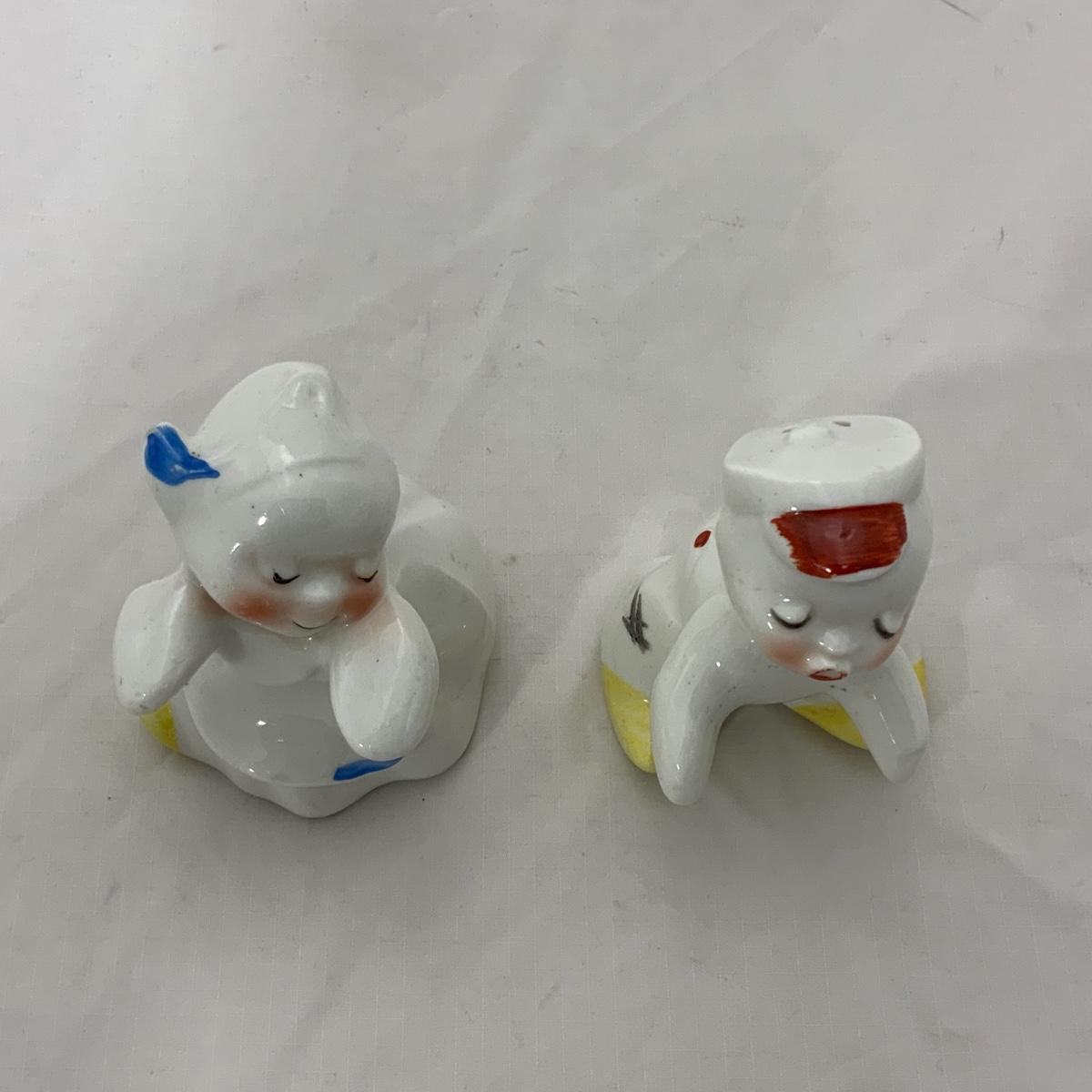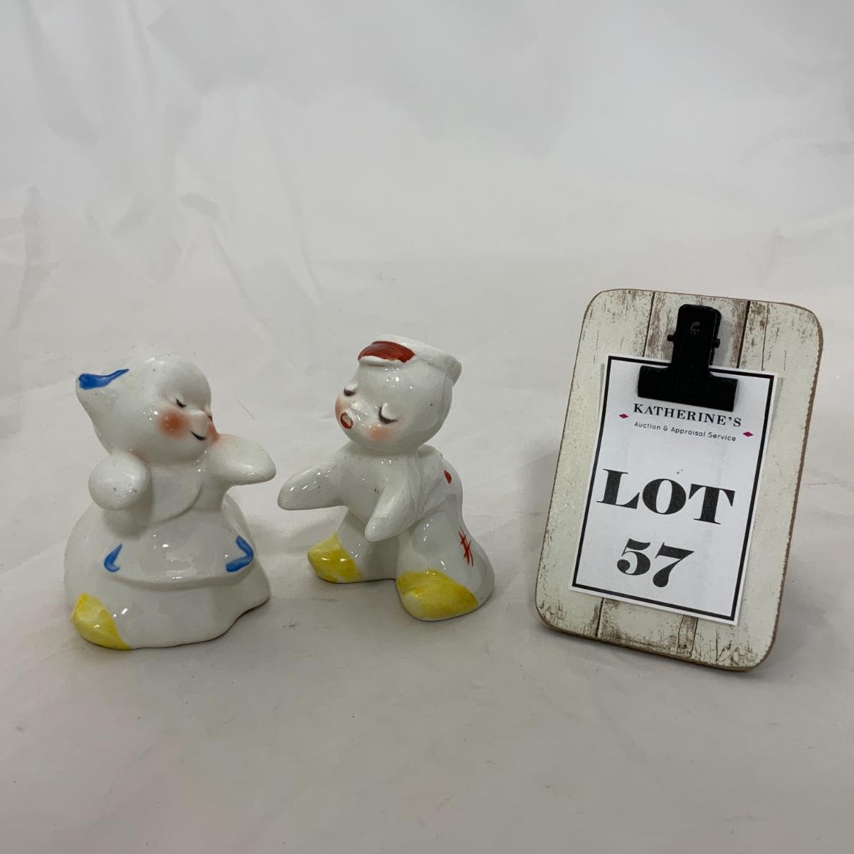 From the Estate of Peter and Alice Radovanovich: Adorable 1950s Dutch Couple Huggies Salt and Pepper Shakers. These are in fine vintage condition and would be an adorable collection to your salt and pepper stash! Please see photos for details and condition. ::: Shipping is available on this lot. If you require shipping you must let us know at the close of the auction. We will coordinate with you after the item has been won. Shipping fees will include insurance up to or exceeding the value of all items being mailed. If you have any questions regarding this lot please contact the auctioneer either via this website, by direct email or by phone. PICK UP TIMES and other important information can be found in the TERMS and DESCRIPTION of the auction. Please take a look for pertinent information. Thanks!