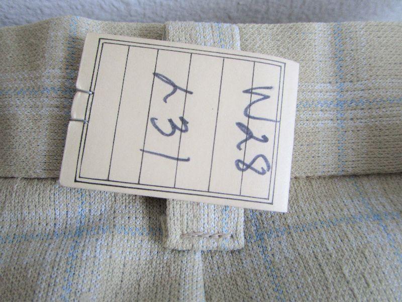 Sage color are marked W29, L31; Light tan plaid marked W28, L31