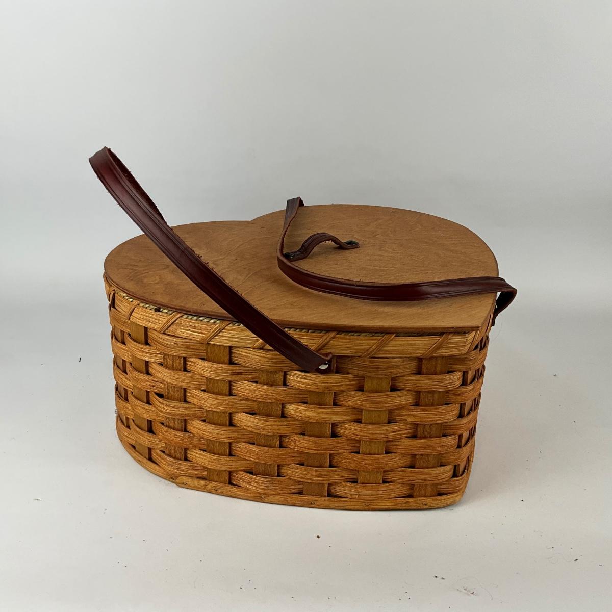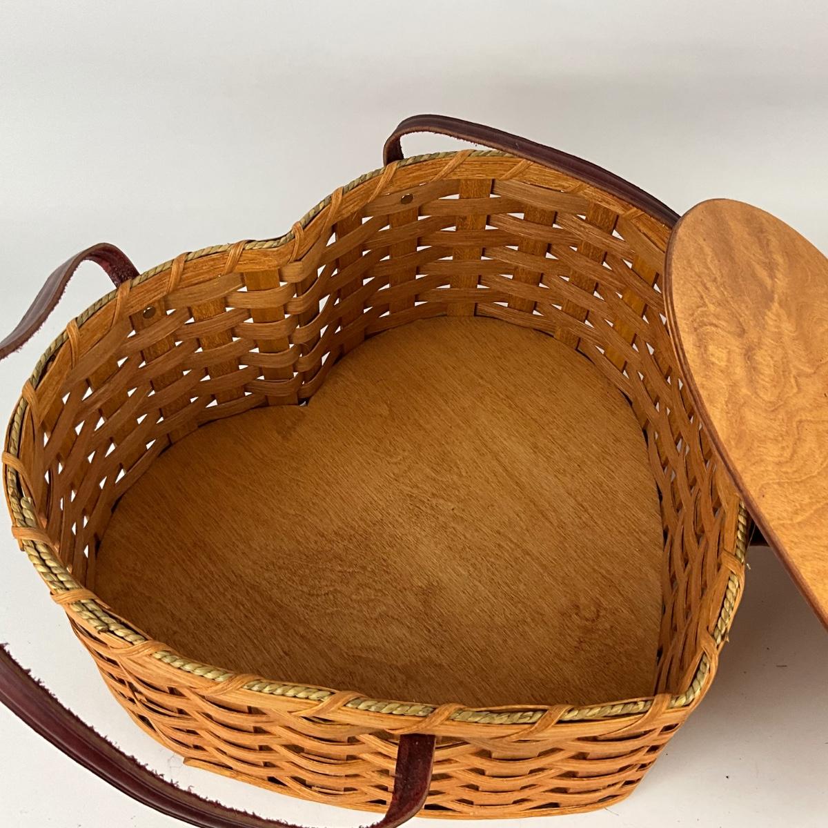 571 Large Amish Handmade Heart Lidded Basket with Leather Handles by Gingrich