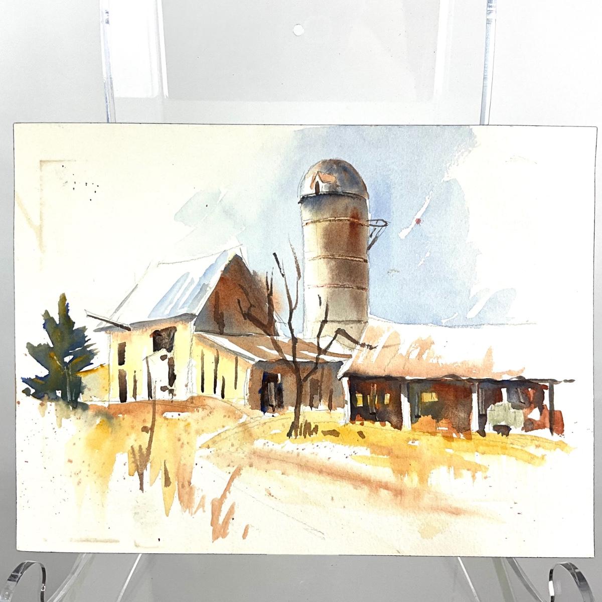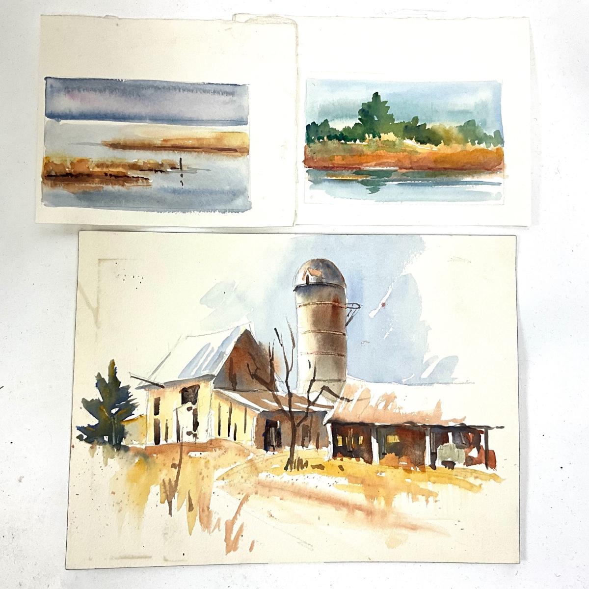 571 Set of Three Original Watercolors of Barn and Landscapes by Peggy Blades