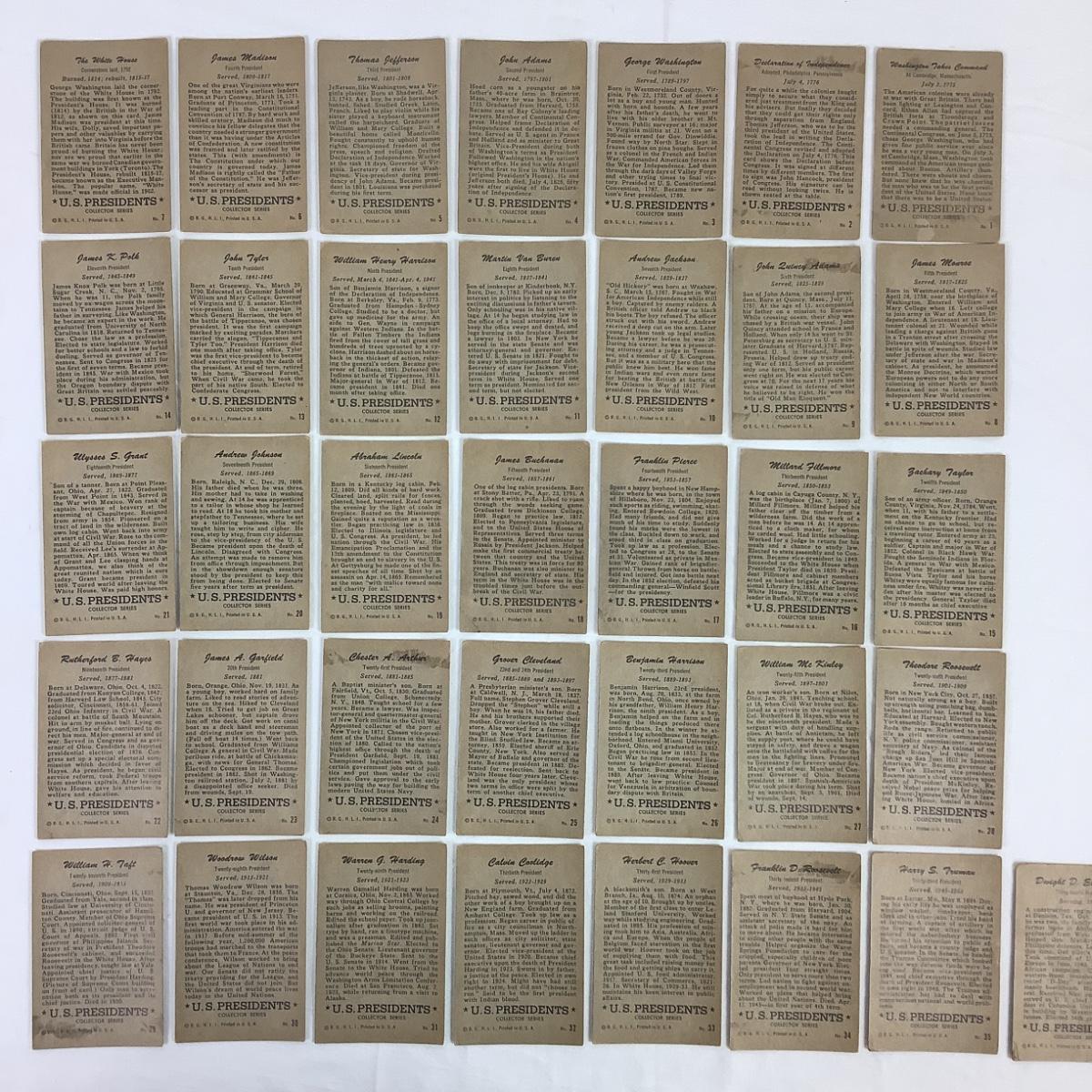 1952 Bowman U.S. Presidents Collector Series 1-36. Whole set non-sports cards. Fair condition is due to aging.