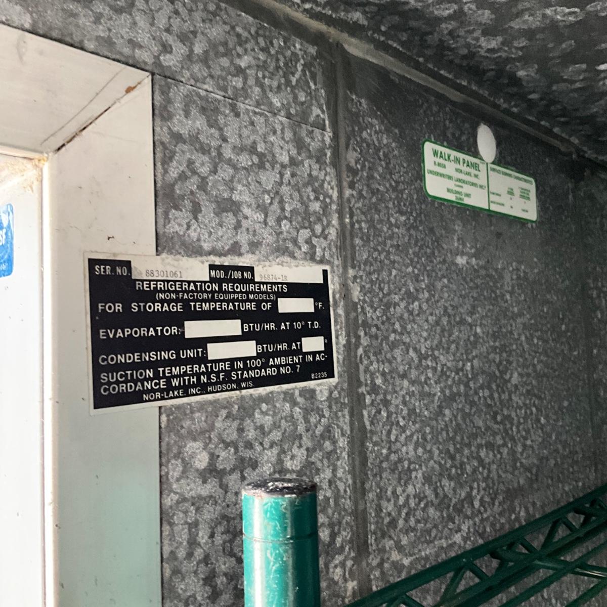 572 NORLAKE Walk-In Cooler 8' x 12' x 7’-3”H Walk In Cooler Remote Compressor w/ Rear Ceiling Mount