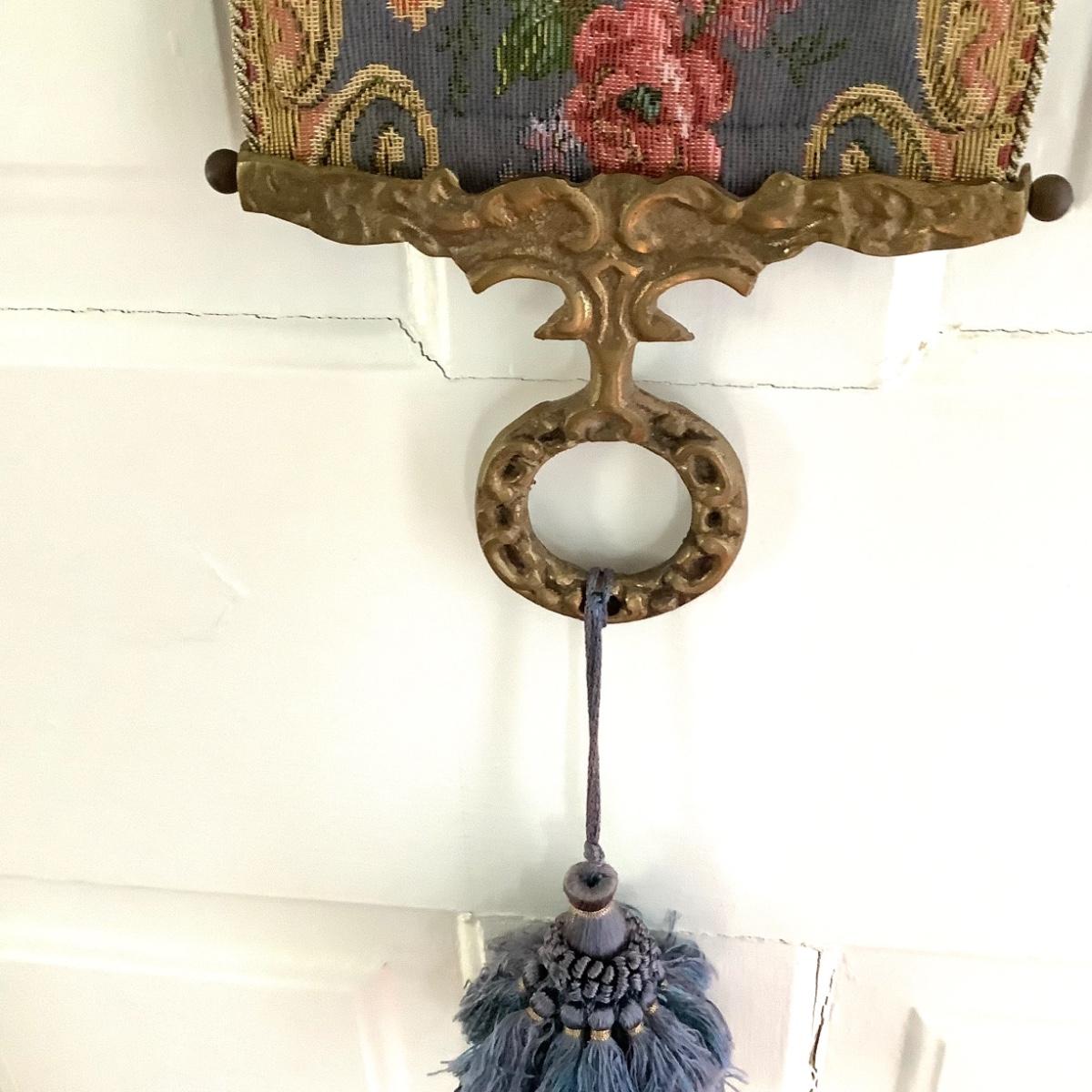 H572 Vintage Floral Tapestry Brass Bell Pull