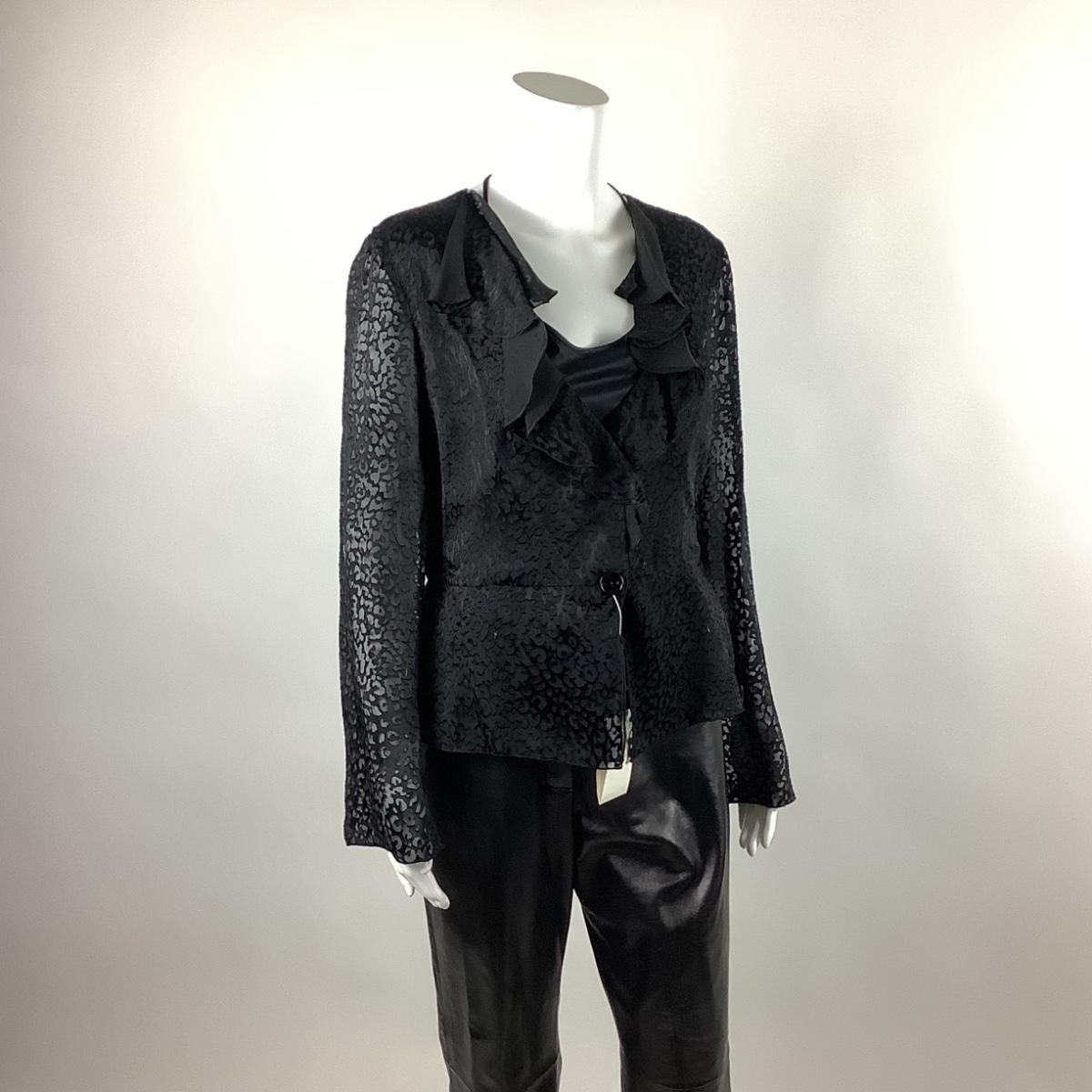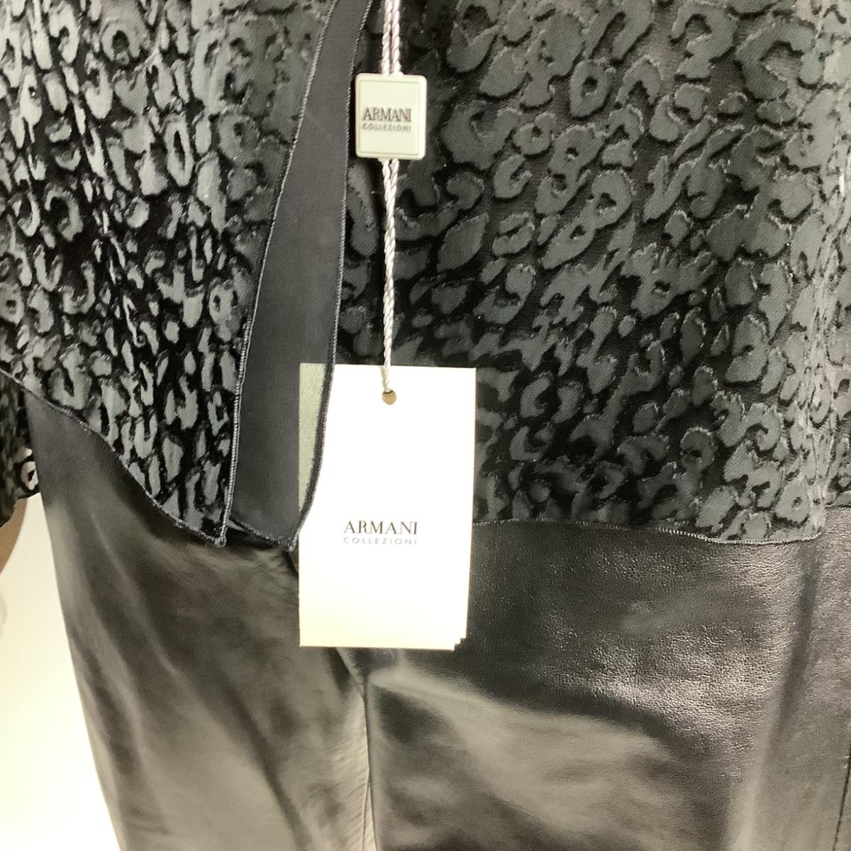 573 New ARMANI Collezioni Black Perforated Sleeve Shirt with Camisole
