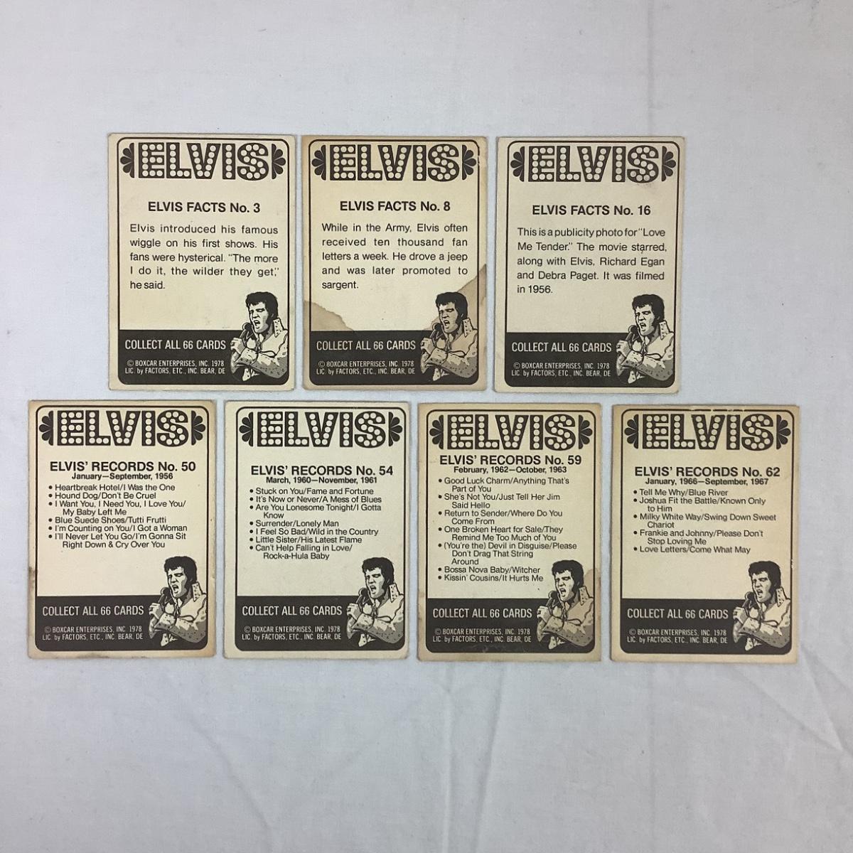 Seven Vintage Boxcar Cards Elvis Presley Collectables "Collect all 66"