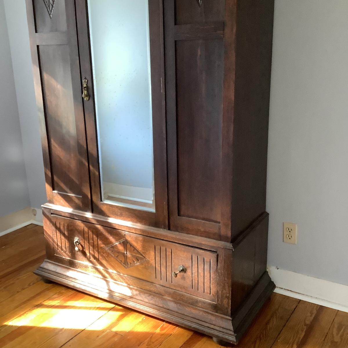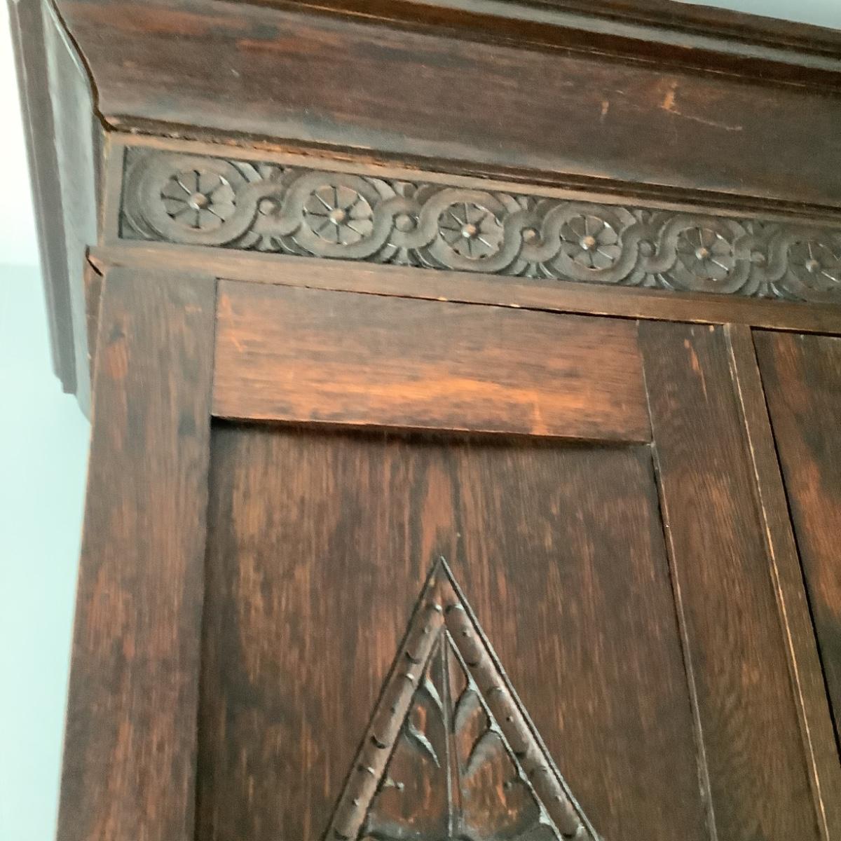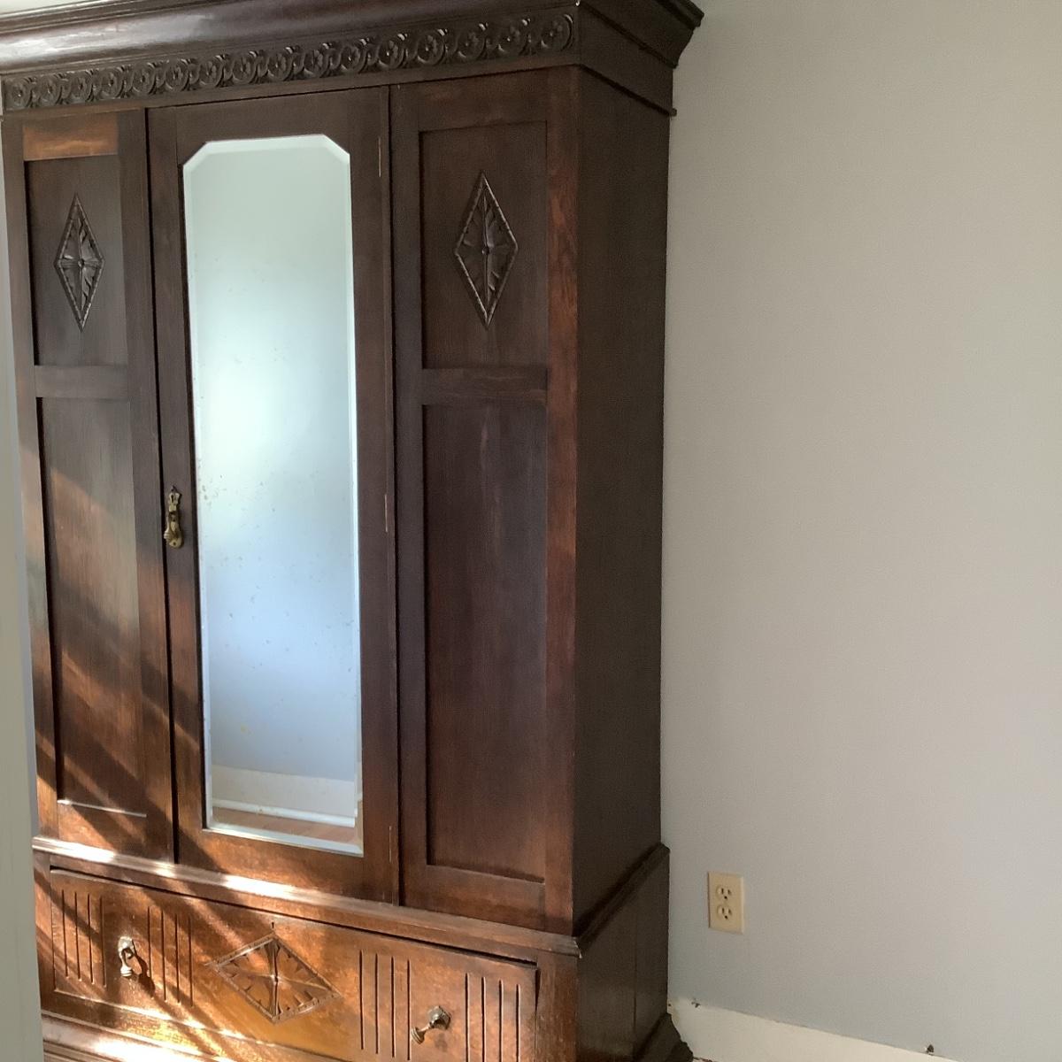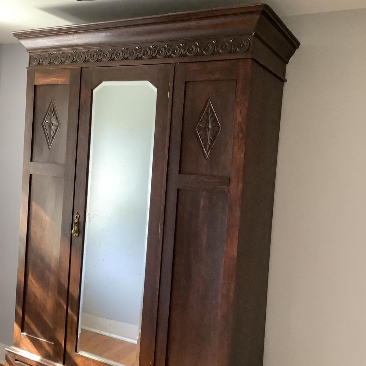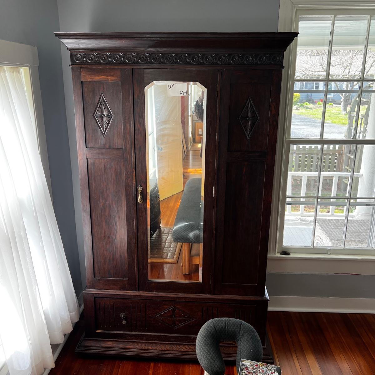 H574 Antique Victorian Wardrobe with Carved Accents