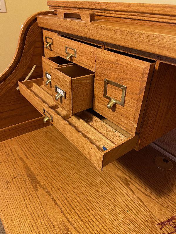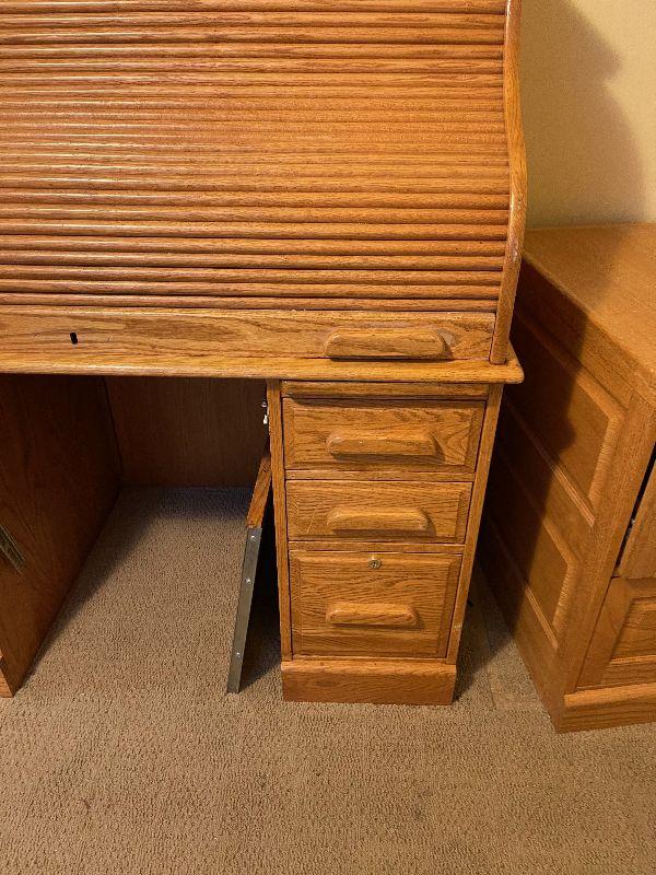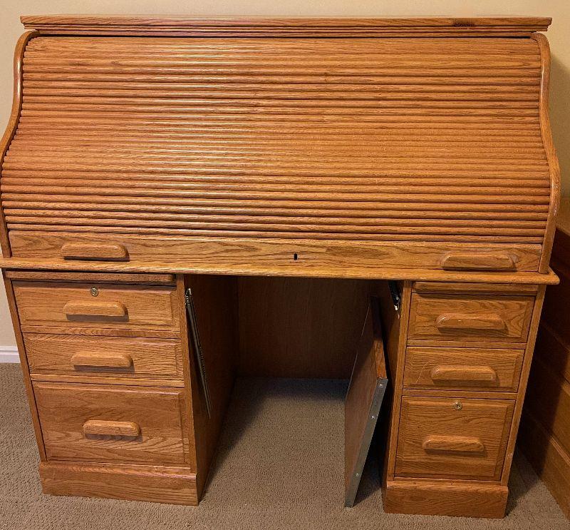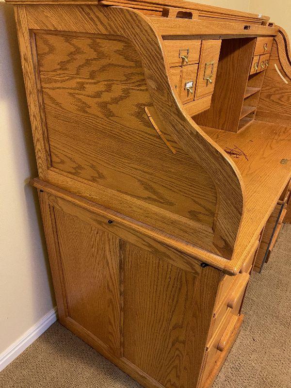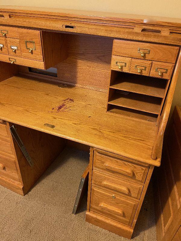 #577 B OAK ROLL TOP DESK- In BASEMENT BRING HELP TO BRING UPSTAIRS!!!!!