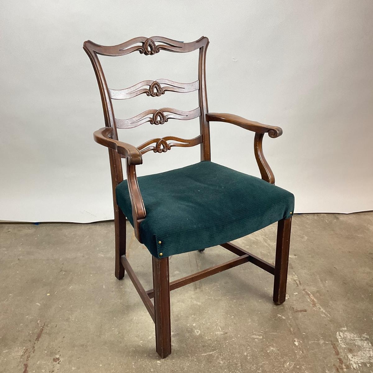 578 Vintage Mahogany Ladderback Upholstered Arm Chair