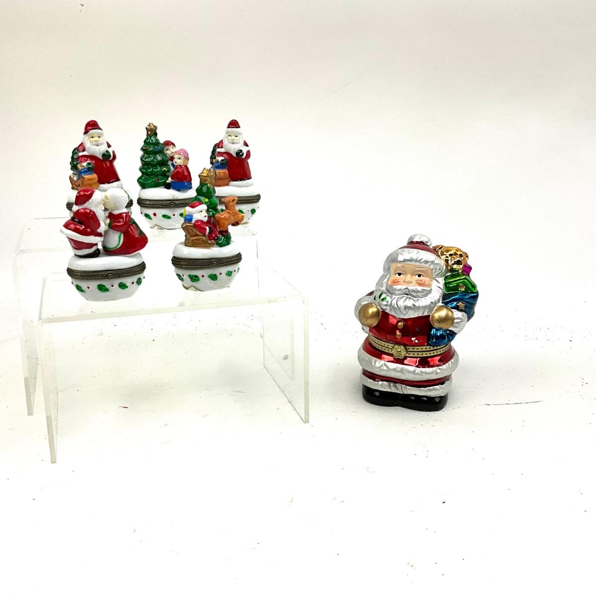 579 Lot of Porcelain Miniature Boxes with Musical Santa Box